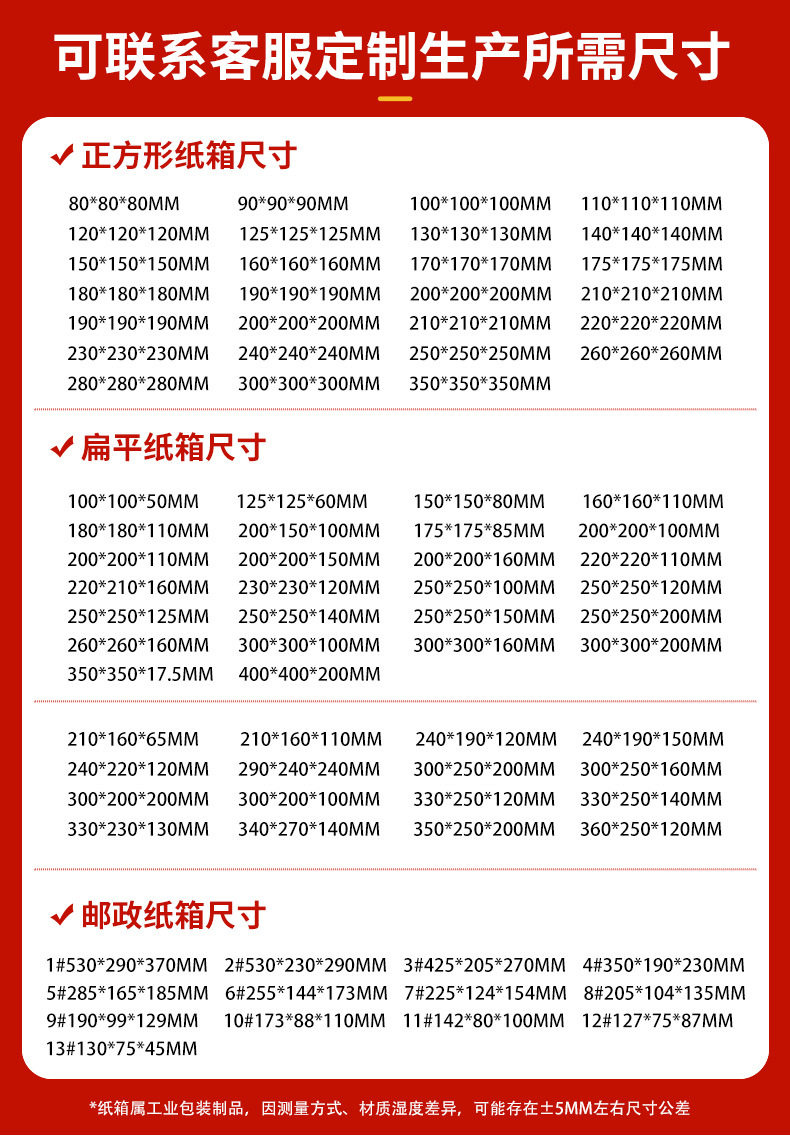 | Specifications and models | Positive 8x8x8cm; three layers of extra hard (blank without nails),Positive 9x9x9cm; three layers of extra hard (blank without nails),Positive 10x10x10cm; three layers of extra hard (blank without nails),Positive 10x10x10cm; three layers of hardening (blank without nails),Positive 11x11x11cm; three layers of extra hard (blank without nails),Positive 12x12x12cm; three layers of extra hard (blank without nails),Positive 12x12x12cm; five layers of hardening (blank without nails),Positive 12.5x12.5x12.5cm; three layers of hardening (blank without nails),Positive 13x13x13cm; three layers of extra hard (blank without nails),Positive 14x14x14cm; three layers of extra hard (blank without nails),Positive 15x15x15cm; three layers of extra hard (blank without nails),Positive 15x15x15cm; three layers of hardening (blank without nails),Positive 15x15x15cm; five layers of hardening (blank without nails),Positive 16x16x16cm; three layers of extra hard (blank without nails),Positive 17x17x17cm; three layers of extra hard (blank without nails),Positive 17.5x17.5x17.5cm; three layers of hardening (blank without nails),Positive 18x18x18cm; three layers of extra hard (blank without nails),Positive 18x18x18cm; five layers of hardening (blank without nails),Positive 19x19x19cm; three layers of extra hard (blank without nails),Positive 19x19x19cm; three layers of hardening (blank without nails),Positive 20x20x20cm; three layers of extra hard (blank without nails),Positive 20x20x20cm; three layers of hardening (blank without nails),Positive 20x20x20cm; five layers of hardening (blank without nails),Positive 21x21x21cm; three layers of extra hard (blank without nails),Positive 22x22x22cm; three layers of extra hard (blank without nails),Positive 23x23x23cm; three layers of extra hard (blank without nails),Positive 24x24x24cm; three layers of extra hard (blank without nails),Positive 25x25x25cm; three layers of extra hard (blank without nails),Positive 25x25x25cm; five layers of hardening (blank without nails),Positive 26x26x26cm; three layers of extra hard (blank without nails),Positive 28x28x28cm; three layers of extra hard (blank without nails),Positive 30x30x30cm; three layers of extra hard (blank without nails),Positive 30x30x30cm; three layers of hardening (blank without nails),Positive 35x35x35cm; three layers of hardening (blank without nails),Positive 35x35x35cm; five layers of hardening (blank without nails),Positive 35x35x35cm; five layers of extra hard (blank without nails),10x10x5cm; three layers of hardening (blank without nails),12.5x12.5x6cm; three layers of hardening (blank without nails),15x15x8cm; three layers of hardening (blank without nails),16x16x11cm; three layers of extra hard (blank without nails),18x18x11cm; three layers of extra hard (blank without nails),20x15x10cm; three layers of extra hard (blank without nails),17.5x17.5x8.5cm; three layers of hardening (blank without nails),20x20x10cm; three layers of hardening (blank without nails),20x20x11cm; three layers of extra hard (blank without nails),20x20x15cm; three layers of hardening (blank without nails),20x20x16cm; three layers of extra hard (blank without nails),21x16x6.5cm; three layers of extra hard (blank without nails),21x16x11cm; three layers of extra hard (blank without nails),22x22x11cm; three layers of extra hard (blank without nails),22x22x16cm; three layers of extra hard (blank without nails),23x23x12cm; three layers of extra hard (blank without nails),24x19x12cm; three layers of extra hard (blank without nails),24x19x12cm; three layers of hardening (blank without nails),24x19x15cm; three layers of extra hard (blank without nails),24x22x12cm; three layers of extra hard (blank without nails),25x25x10cm; three layers of extra hard (blank without nails),25x25x12cm; three layers of extra hard (blank without nails),25x25x12.5cm; three layers of hardening (blank without nails),25x25x14cm; three layers of extra hard (blank without nails),25x25x15cm; three layers of hardening (blank without nails),25x25x20cm; three layers of extra hard (blank without nails),25x25x20cm; three layers of hardening (blank without nails),26x26x16cm; three layers of extra hard (blank without nails),25x20x20cm; three layers of extra hard (blank without nails),27x22x14cm; three layers of extra hard (blank without nails),29x24x12cm; three layers of extra hard (blank without nails),29x24x24cm; three layers of extra hard (blank without nails),30x30x10cm; three layers of hardening (blank without nails),30x30x16cm; three layers of extra hard (blank without nails),30x30x16cm; three layers of hardening (blank without nails),30x25x20cm; three layers of extra hard (blank without nails),30x25x20cm; three layers of hardening (blank without nails),30x25x16cm; three layers of extra hard (blank without nails),30x20x20cm; three layers of extra hard (blank without nails),30x20x10cm; three layers of extra hard (blank without nails),30x30x20cm; three layers of extra hard (blank without nails),33x25x12cm; three layers of extra hard (blank without nails),33x25x14cm; three layers of extra hard (blank without nails),33x23x13cm; three layers of extra hard (blank without nails),34x27x14cm; three layers of extra hard (blank without nails),35x25x20; three layers of extra hard (blank without nails),35x35x17.5cm; three layers of hardening (blank without nails),36x25x12cm; three layers of extra hard (blank without nails),40x40x20cm; three layers of hardening (blank without nails),Box no. 13 (13x7.5x4.5)cm; three layers of hardening (blank without nails),Box no. 12 (12.7x7.5x8.7)cm; three layers of extra hard (blank without nails),Box no. 12 (12.7x7.5x8.7)cm; three layers of hardening (blank without nails),Box no. 12 (12.7x7.5x8.7)cm; five layers of hardening (blank without nails),Box no. 12 (12.7x7.5x8.7)cm; five layers of extra hard (blank without nails),Box no. 11 (14.2x8x10)cm; three layers of extra hard (blank without nails),Box no. 11 (14.2x8x10)cm