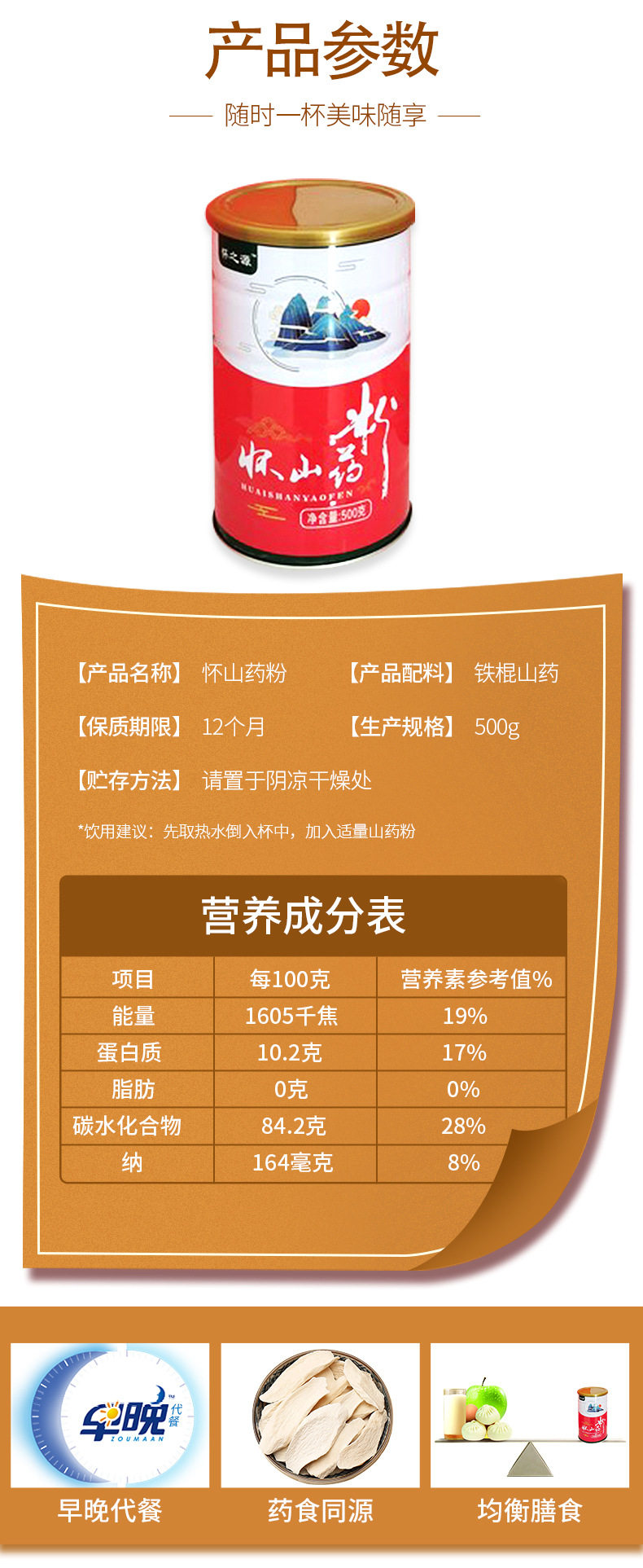 Iron stick yam powder canned 500g yam powder breakfast meal replacement powder cooked yam powder instant instant instant drink canned loose powder