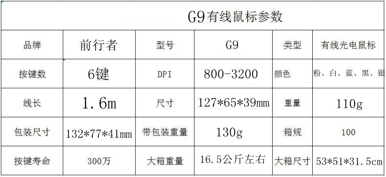 | Packing List | Mouse, packaging box, receiver, data cable |