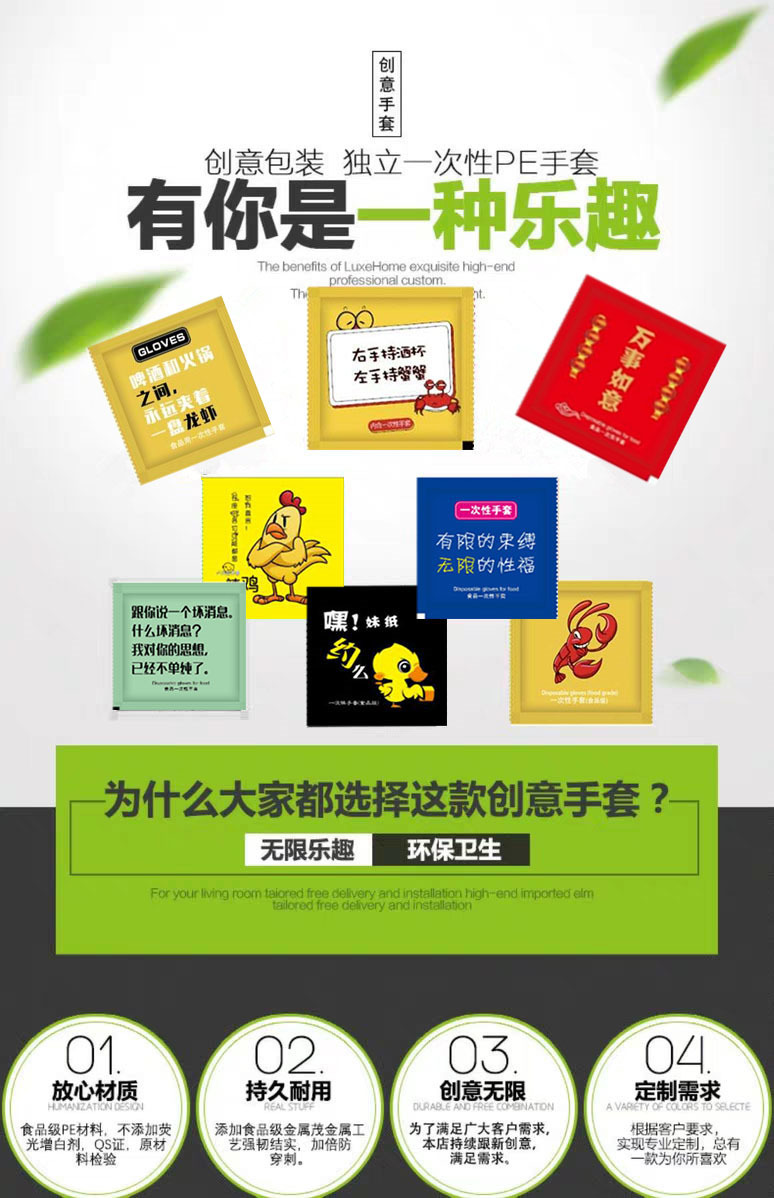 Factory direct supply disposable gloves independent packaging custom LOGO household takeaway health protection plastic gloves