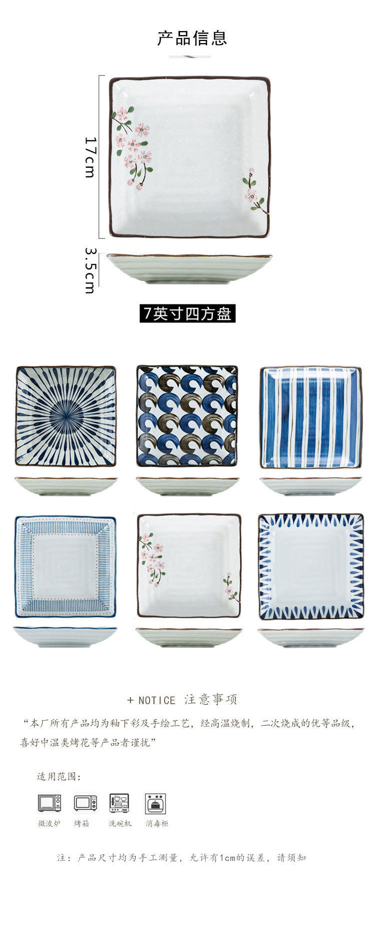 | Color | 7-inch Sakura Square Plate,7 inch drop square plate,7-inch fishing fire square plate,7-inch Jade Rabbit Stepping on Snow Red Square Plate |