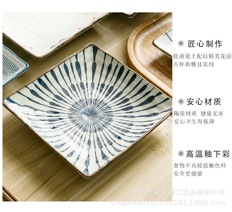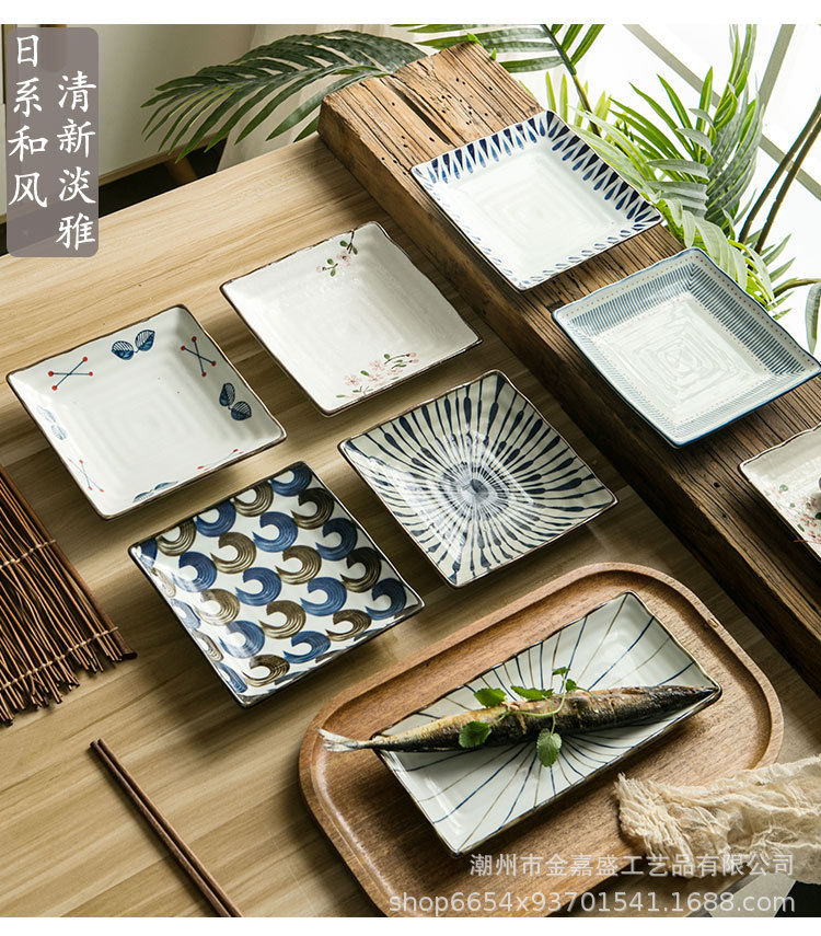 Japanese-style ceramic plate 7 inch square plate sushi salad household deep plate dessert fruit plate ceramic tableware wholesale