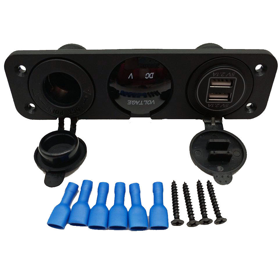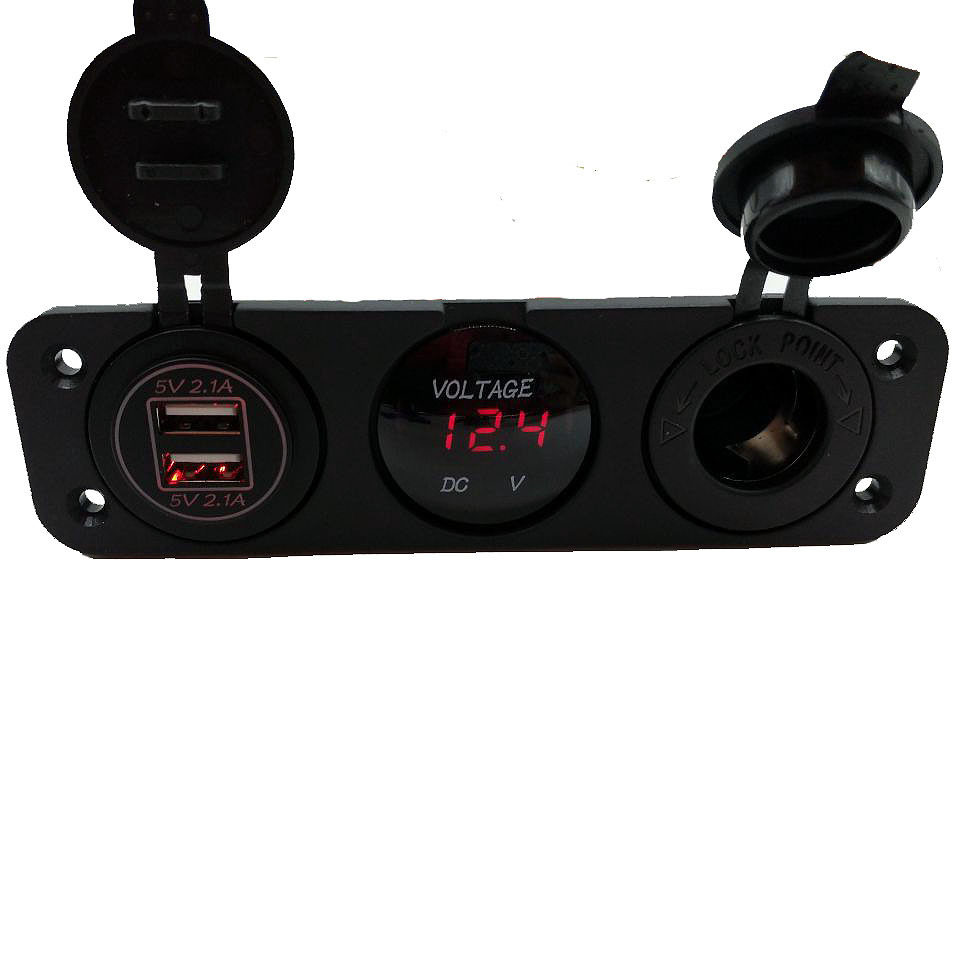 Universal 12-24V Three-In-One Rubber Plate Combination Car Charger with Dual USB and Cigarette Lighter Voltage Meter for Motorcycles and Cars