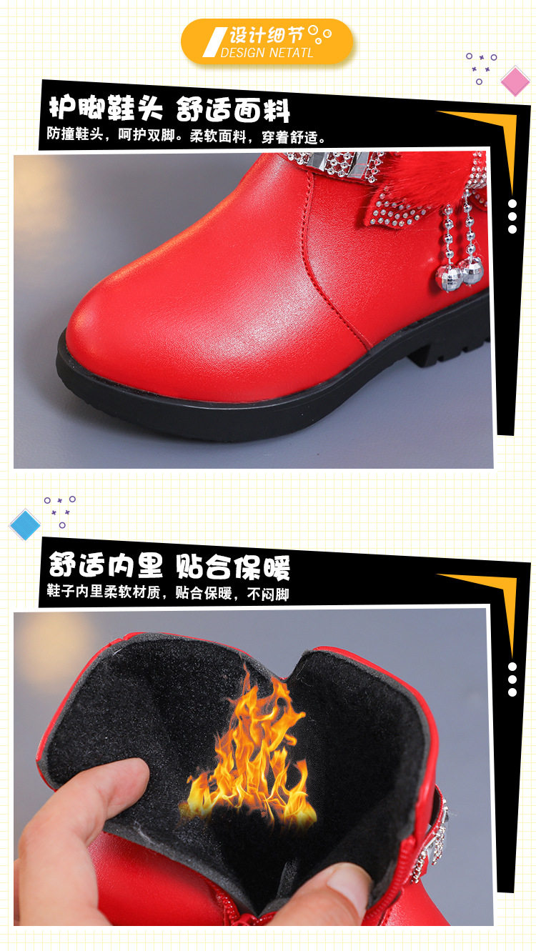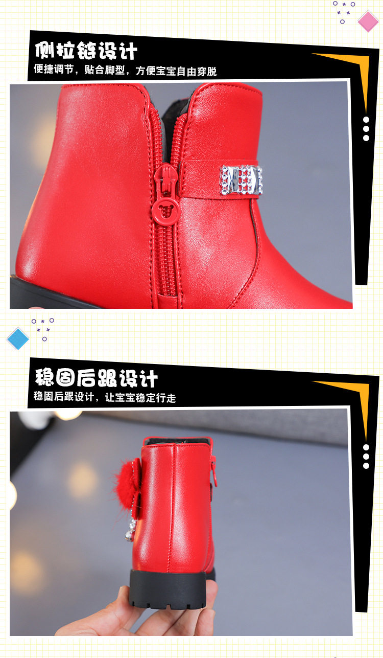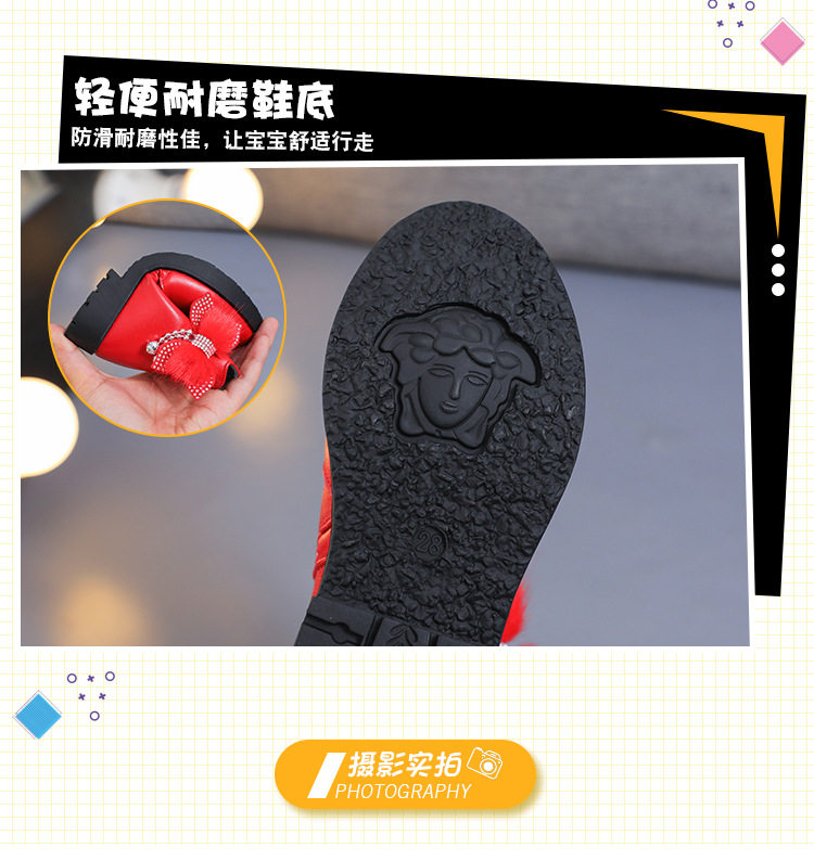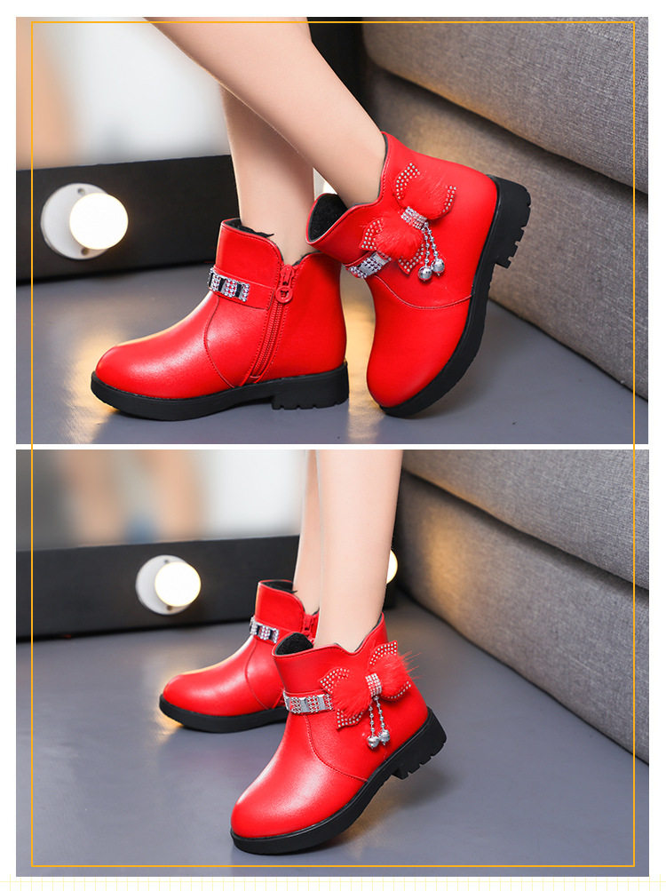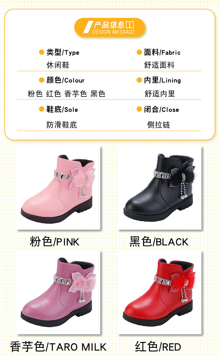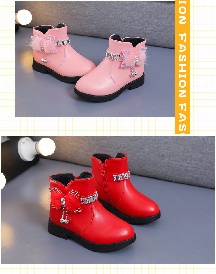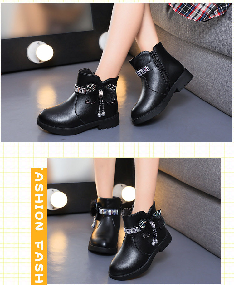 Children's Cotton Boots Princess Fashion Bow Baby Warm Leather Boots 2025 Winter Girls Rhinestone Mid-Calf Short Boots