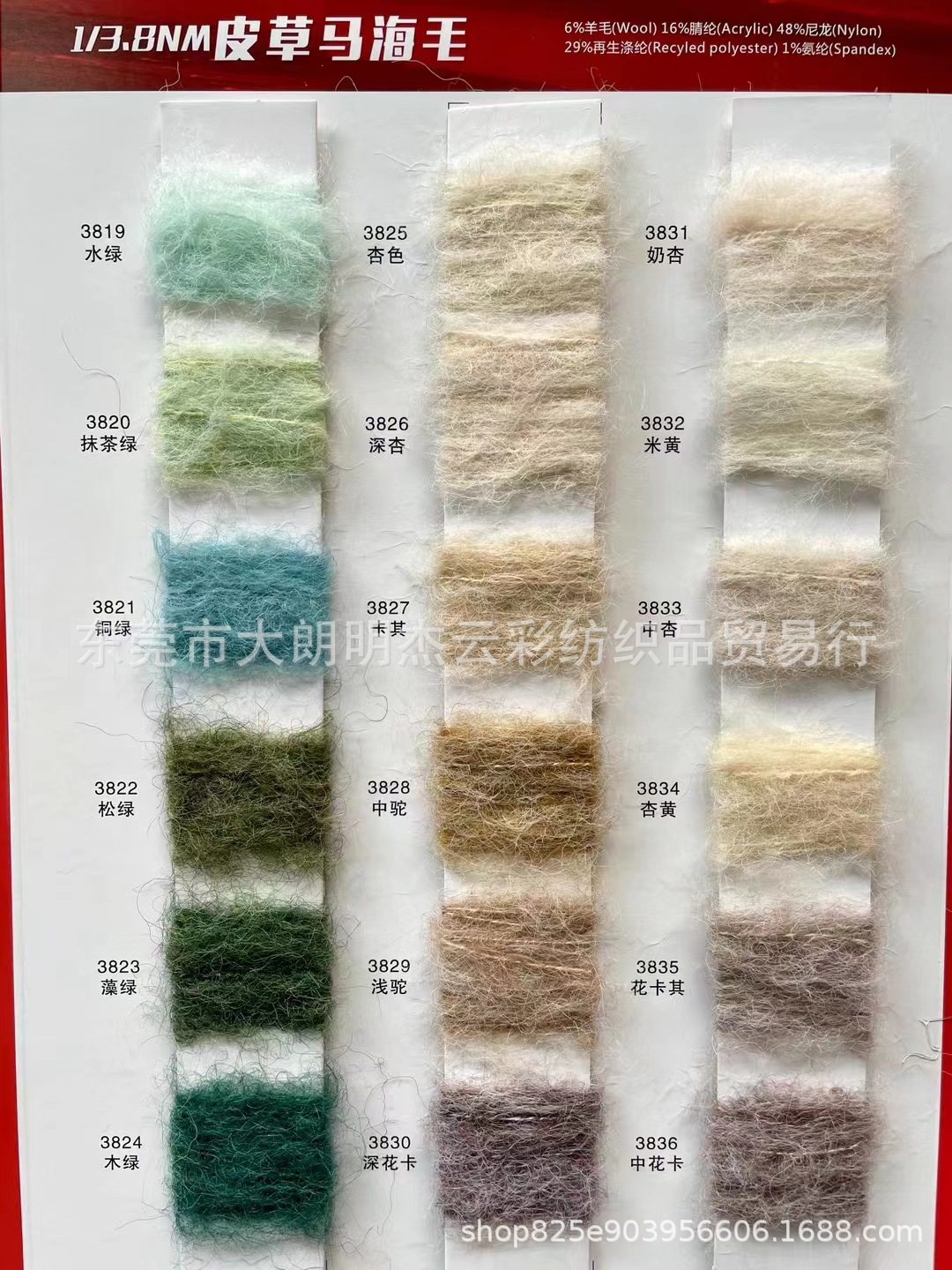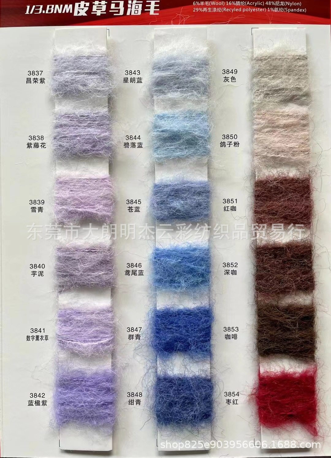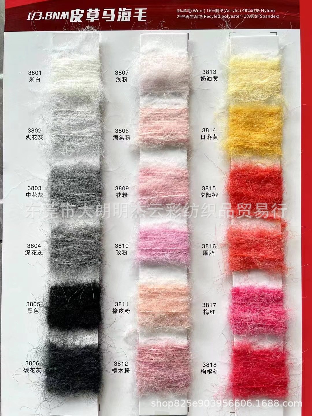 | Specifications and models | 5.5 pieces of mohair,9 mohair,13 mohair,15 count stretch mohair,3.8 pieces of fur mohair,5.5 colorful horses |