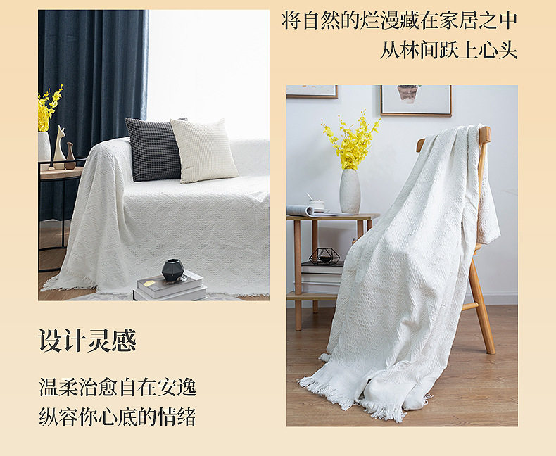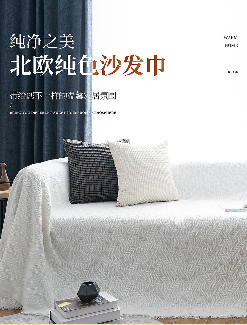 Solid Color T-lattice Sofa Towel Cover Cloth Simple Style Sofa Blanket Cover Towel Sofa Cushion Model Room Decoration Bed End Towel Backrest