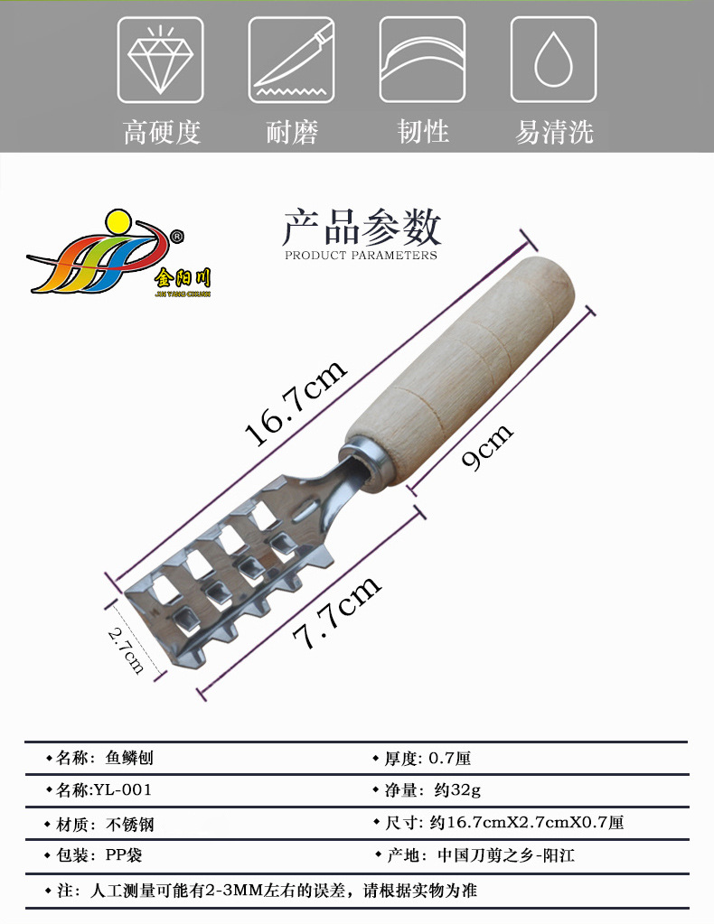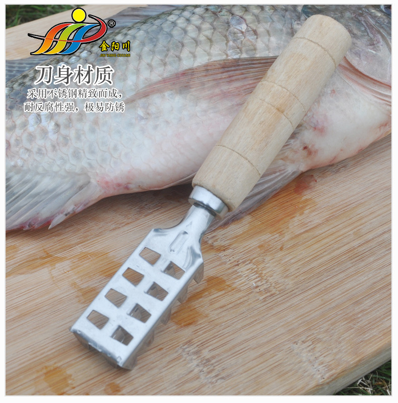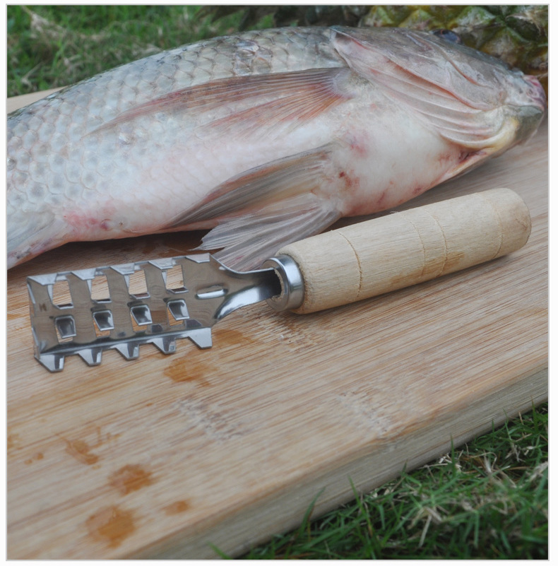 Stainless steel fish scale brush wooden handle fish scale scraper kitchen tool fish scale scraper good helper factory wholesale