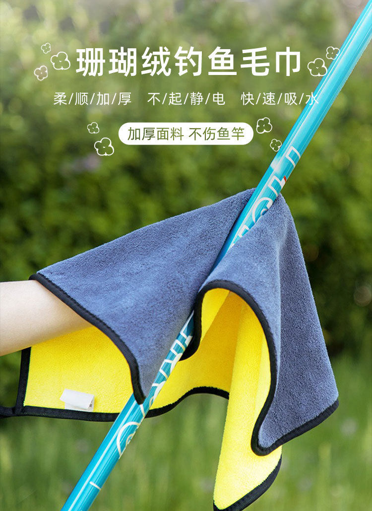 Fishing Towel Manufacturer Wholesale Coral Fleece Thickened Non-Stick Bait Towel for Wiping Fishing Rods, Two-Color Household Multi-Functional Towel