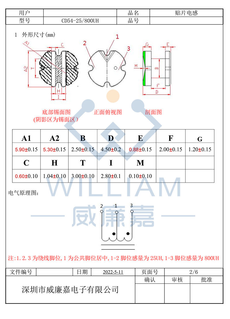 | Model | CD0805 25:800UH |