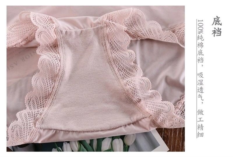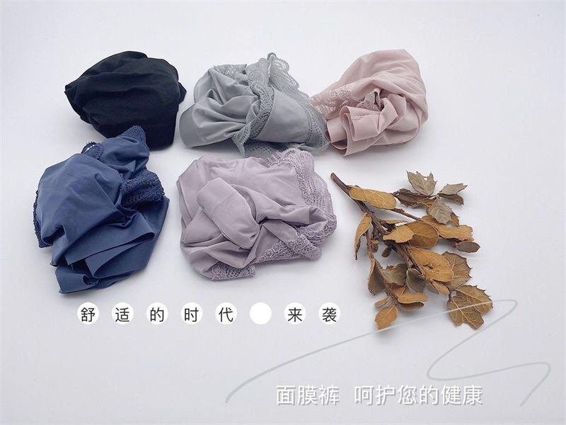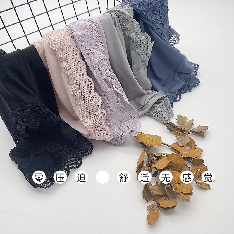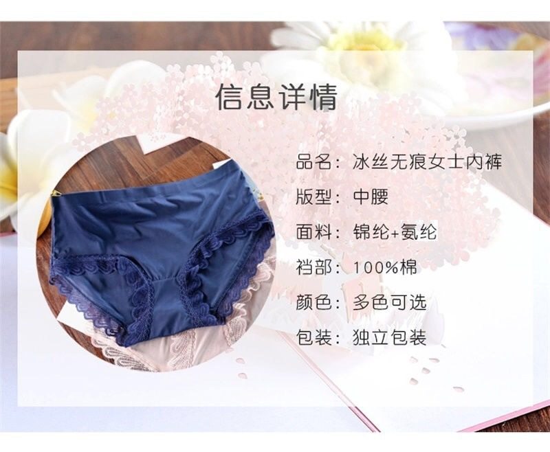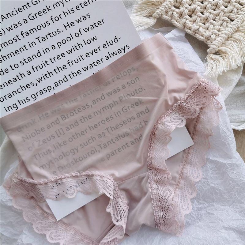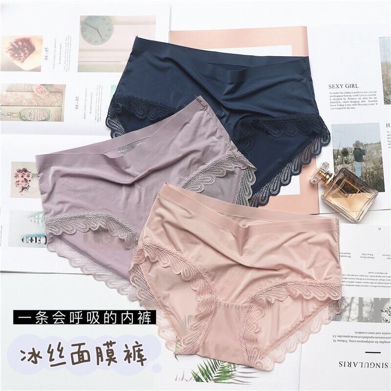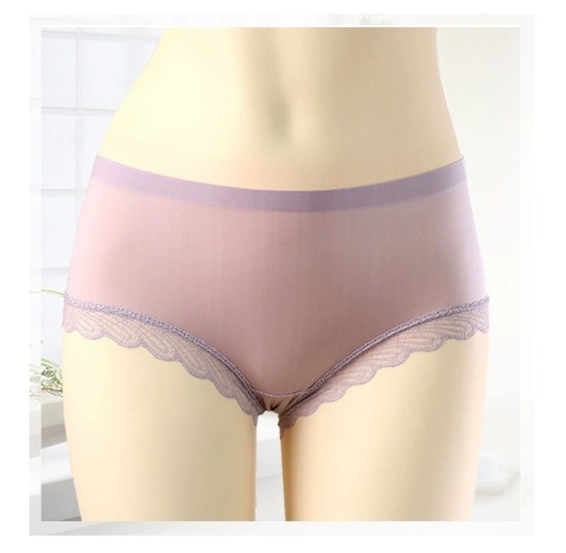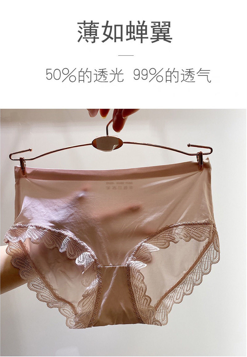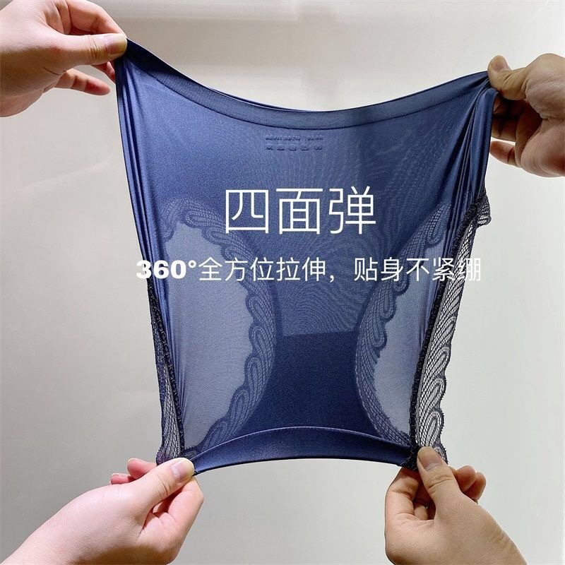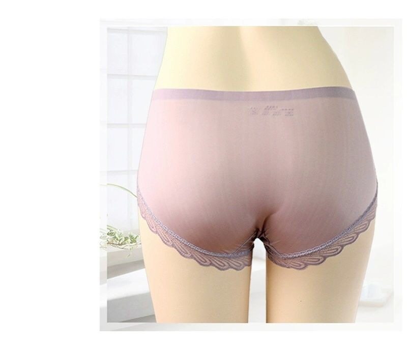 Women's Ice Silk Mask Underwear Lace Sexy Transparent Seamless Mid-Waist Breathable Antibacterial Cotton Crotch Briefs for Girls