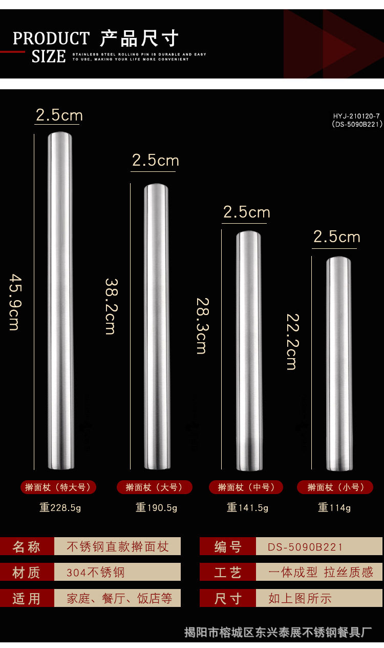 | Specifications | Straight stainless steel rolling pin (large size),Straight stainless steel rolling pin (extra large size),Straight stainless steel rolling pin (small size),Straight stainless steel rolling pin (medium size),Straight stainless steel rolling pin (medium size) + large leakage + note pickering spoon,Straight stainless steel rolling pin (medium size) + dumpling plate + mesh leakage,Straight stainless steel rolling pin (medium size) + dumpling plate + note pickering spoon,Straight stainless steel rolling pin (medium size) + pizza shovel + pizza knife,Straight stainless steel rolling pin (medium size) + pizza shovel + two-wheel pizza cutter,Straight stainless steel rolling pin (medium size) + pizza shovel + note pickering spoon,Straight stainless steel rolling pin (medium size) + note pickering spoon |