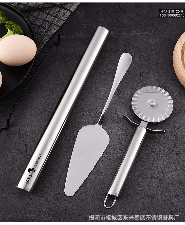 Factory Direct Supply Stainless Steel Kitchen Tools Rolling Pin Pizza Knife Dumpling Picking Spoon Can Be Lasered with logo