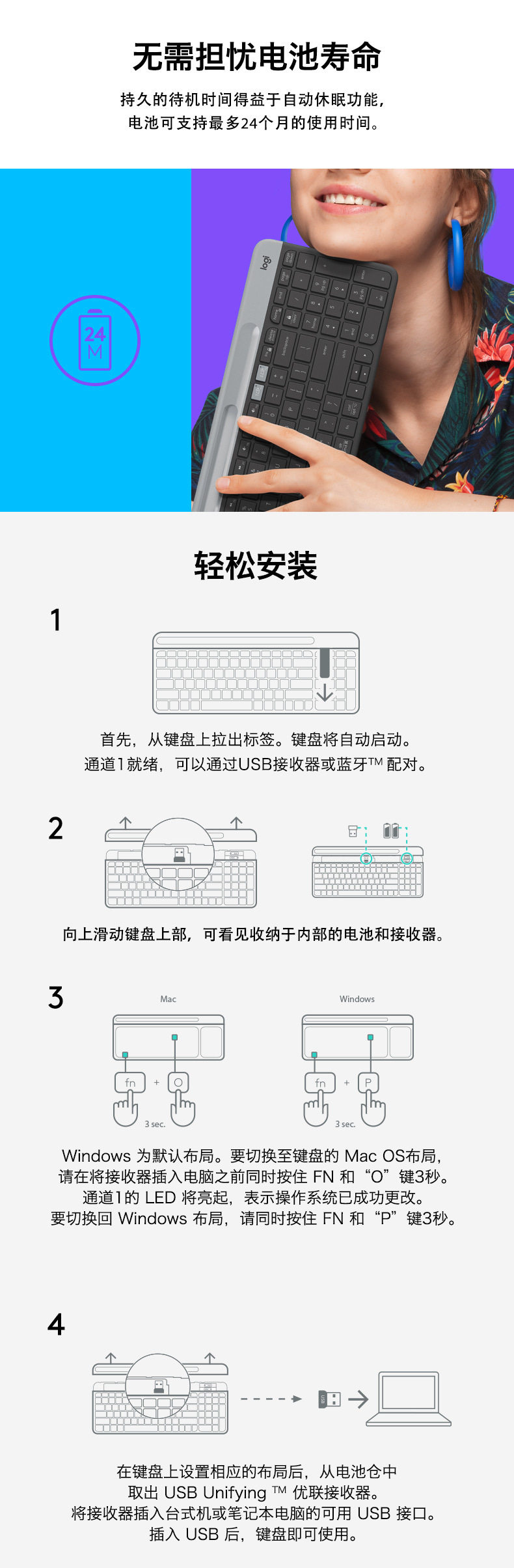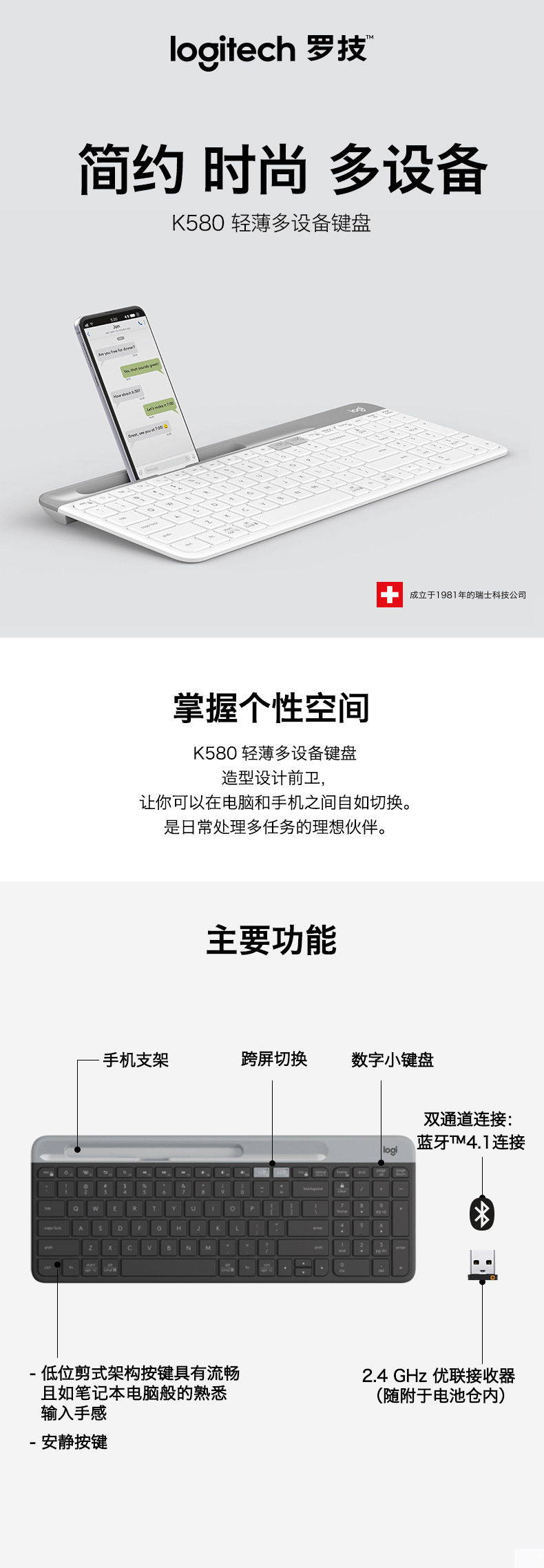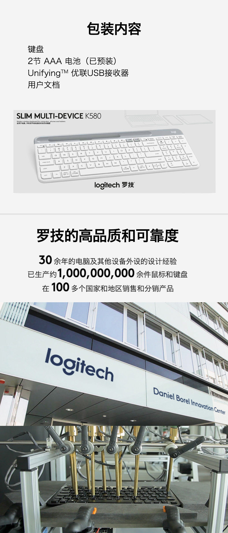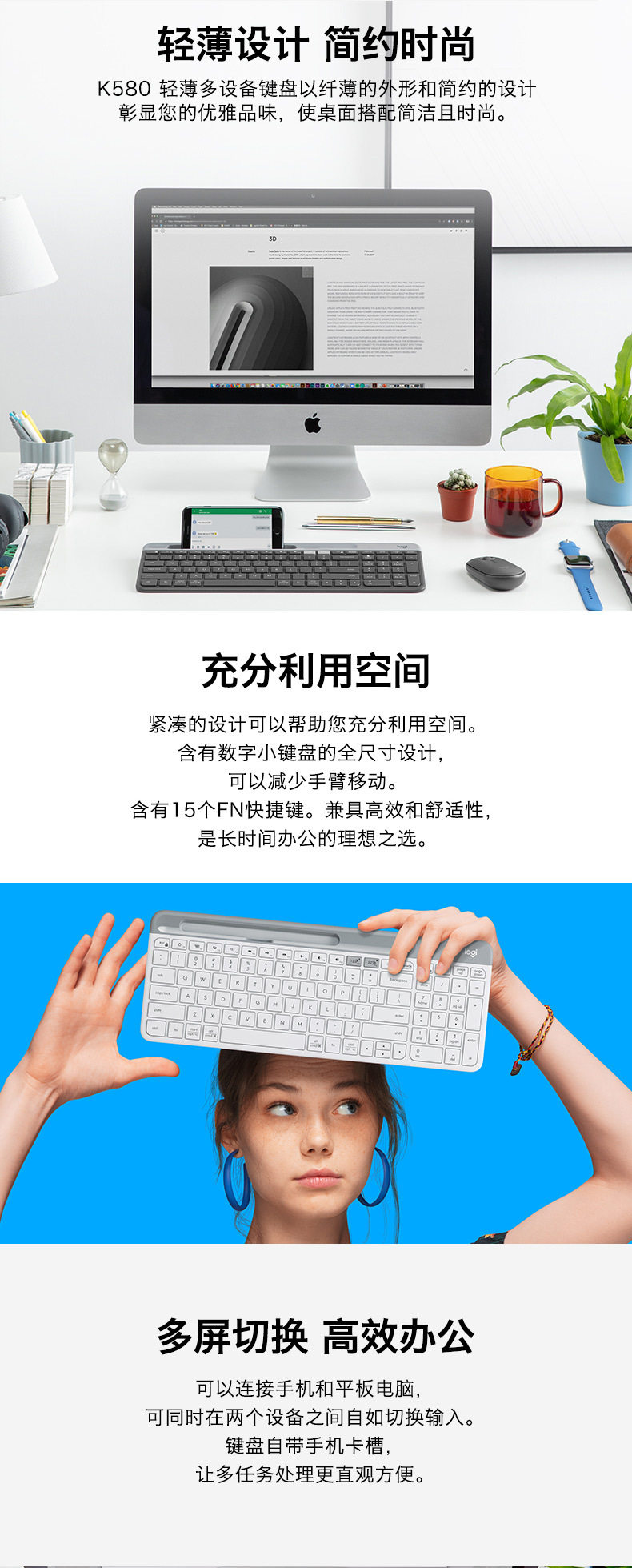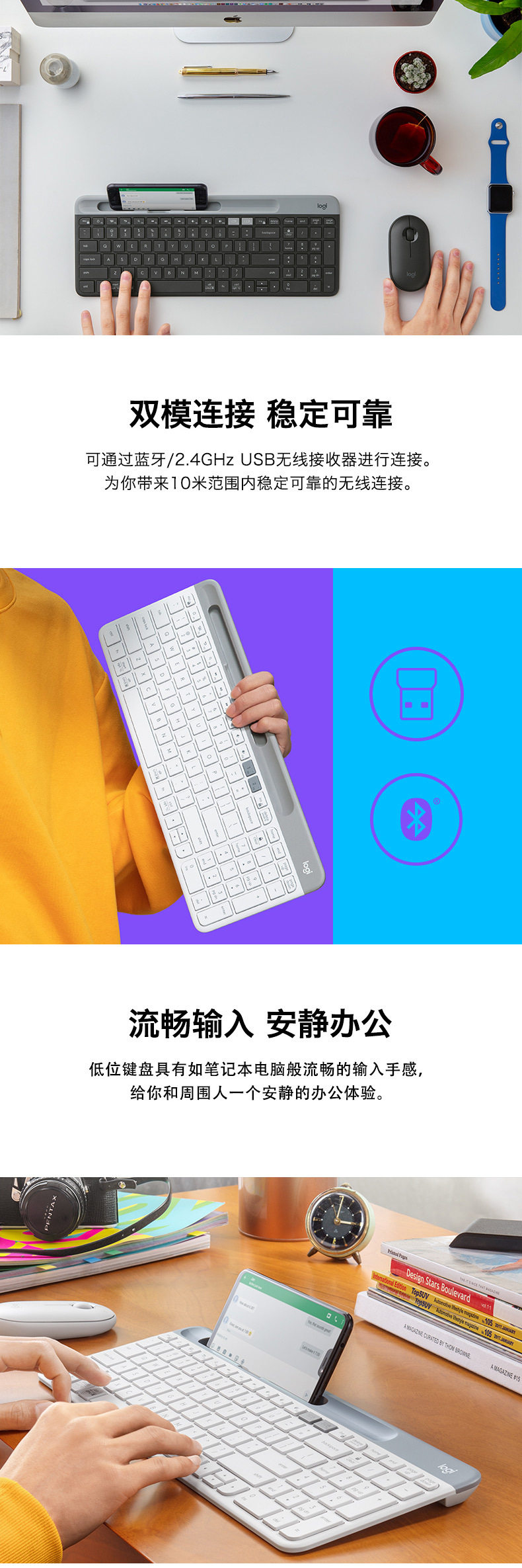 Logitech Fashion Series K580 Wireless Bluetooth Office Keyboard Portable Computer Laptop Keyboard Computer Accessories