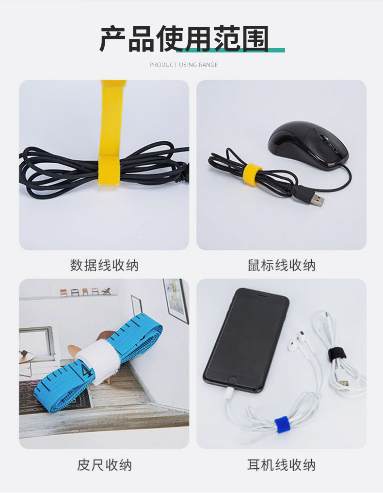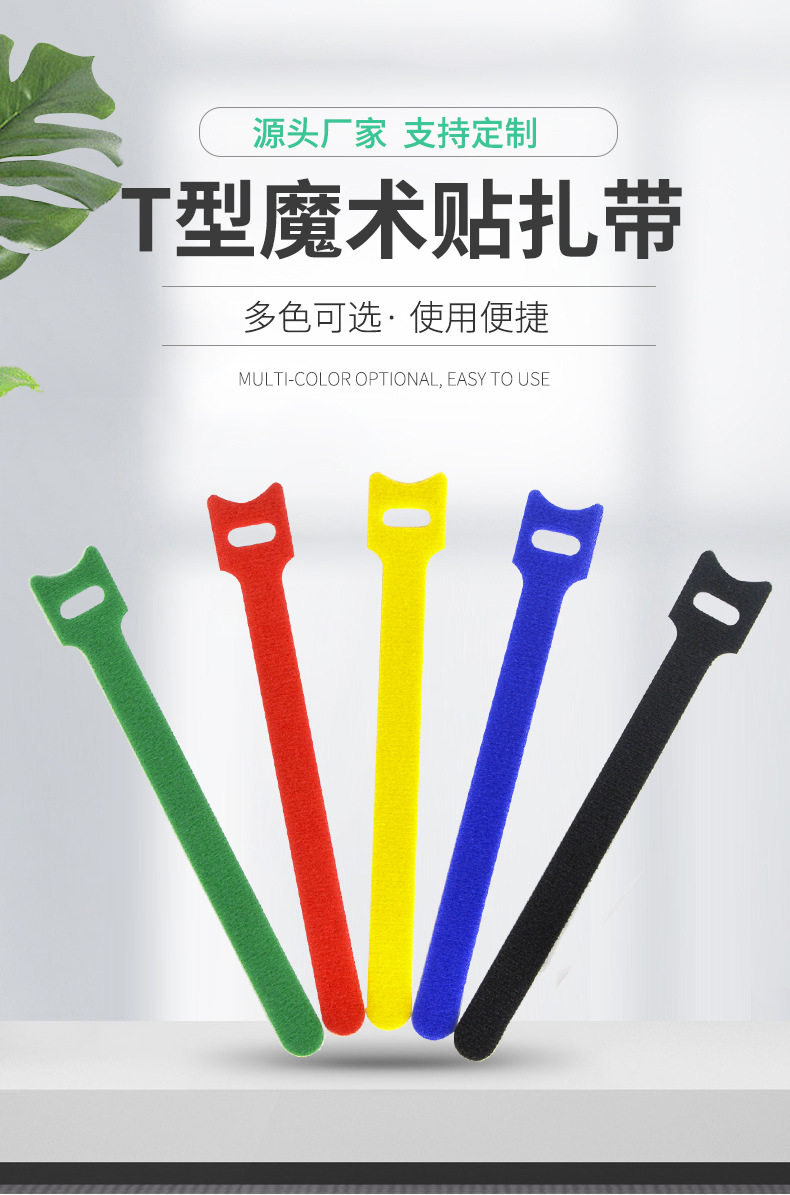 Colorful T-Shaped Velcro Straps with Hook and Loop Fasteners, Integrated Nylon Velcro Straps for Organizing Earphones and Data Cables