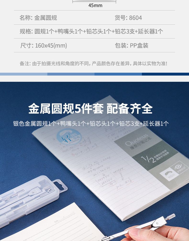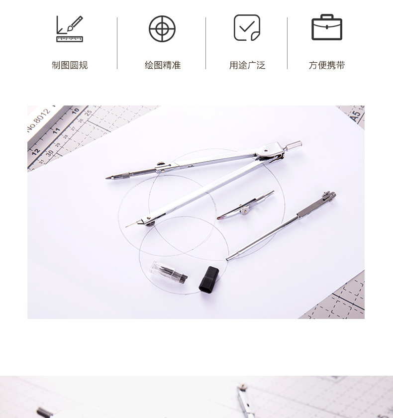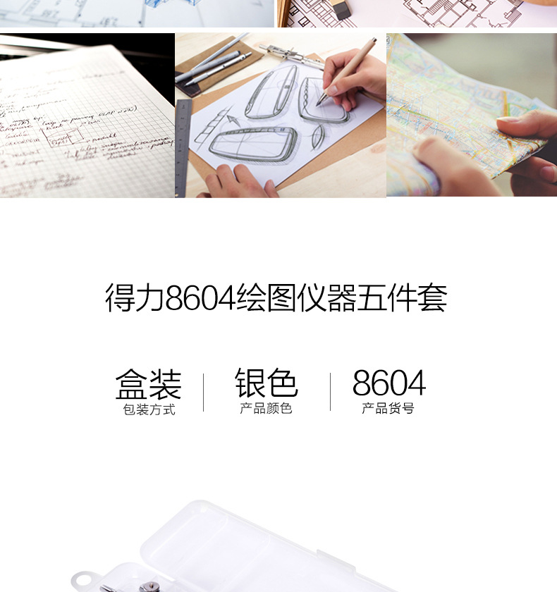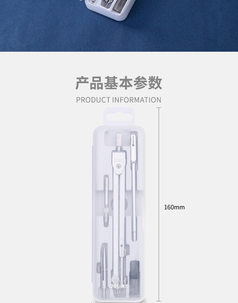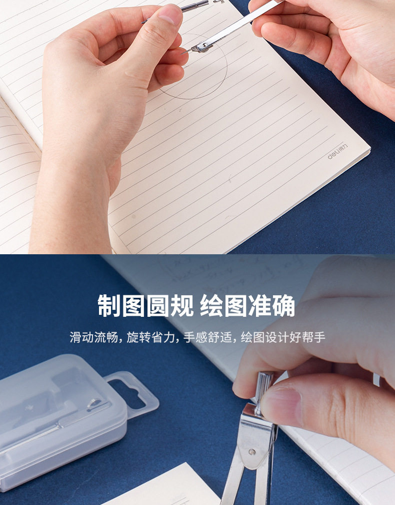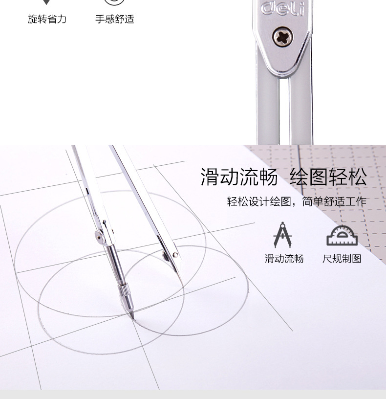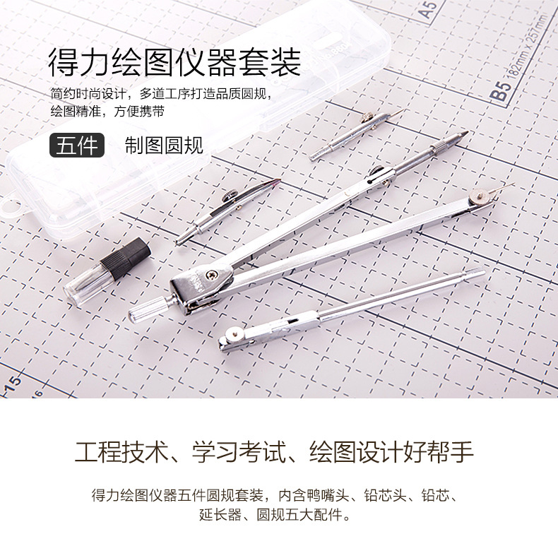 Deli 8604 Compasses Set Engineering Technology Student Drawing Design Tool Metal Texture Drawing Instrument