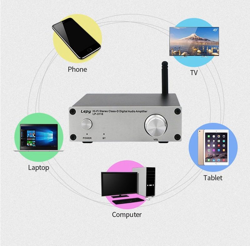 lepyHIFI Class 2.0 Stereo Digital Amplifier TPA3116 50 WX2 Bluetooth Home Class D Amplifier