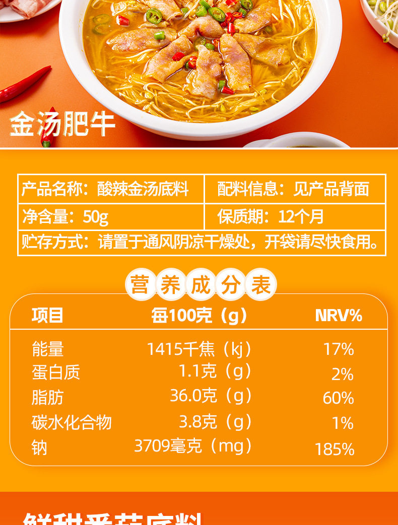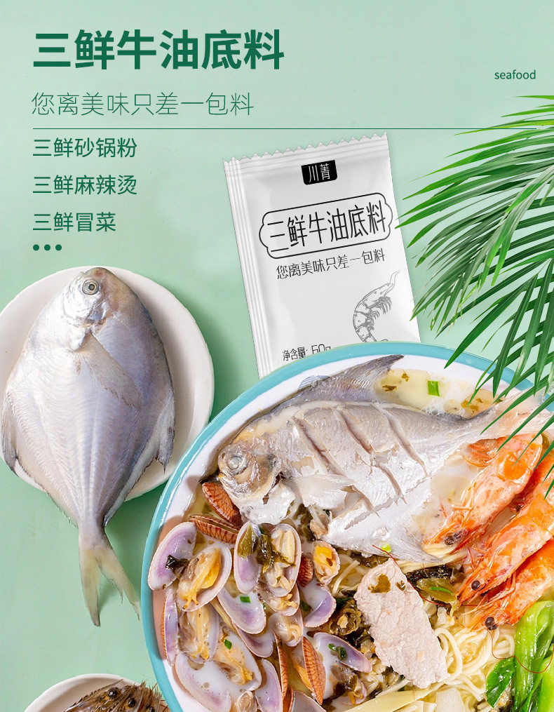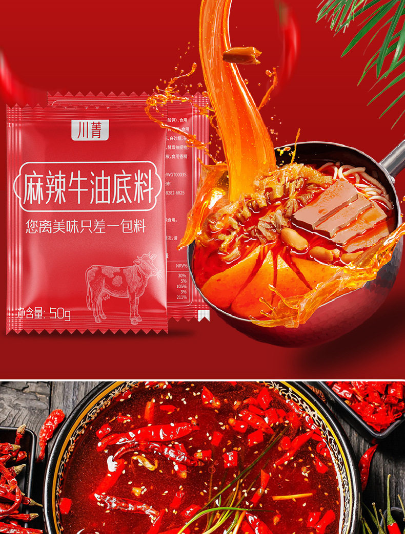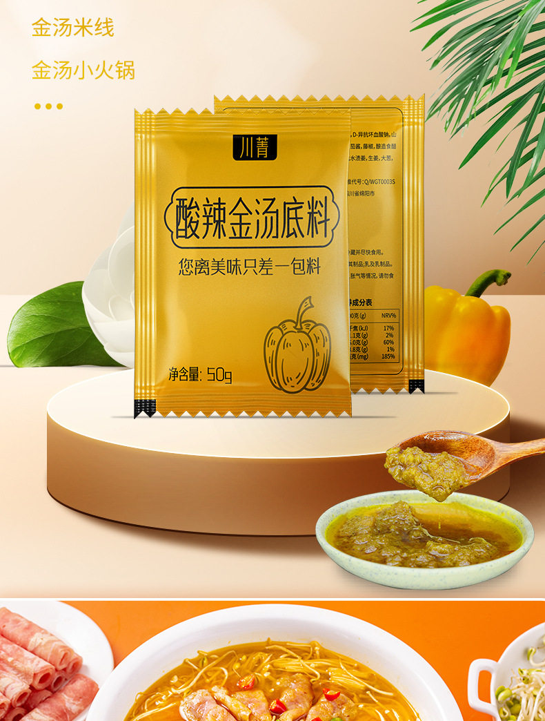 | Packaging specifications | Shanzhen mushroom soup hot pot base 50g,Spicy butter hot pot base 50g,Hot and sour golden soup hot pot base 50g,Strong aroma chicken soup hot pot base 50g,Spicy clear oil hot pot base 50g,Three fresh butter hot pot base 60g,Spicy vine pepper hot pot base 60g,Fresh sweet tomato hot pot base 70g,Spicy beef flavored sauce 50g,Angelica chicken soup sauce 50g,Hot and sour pepper hot pot base 60g,Laotan pickled sauce hot pot base 50g,Concentrated bone soup 30g |