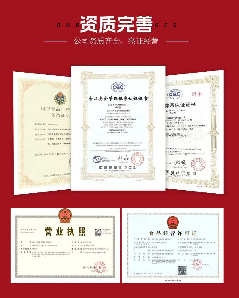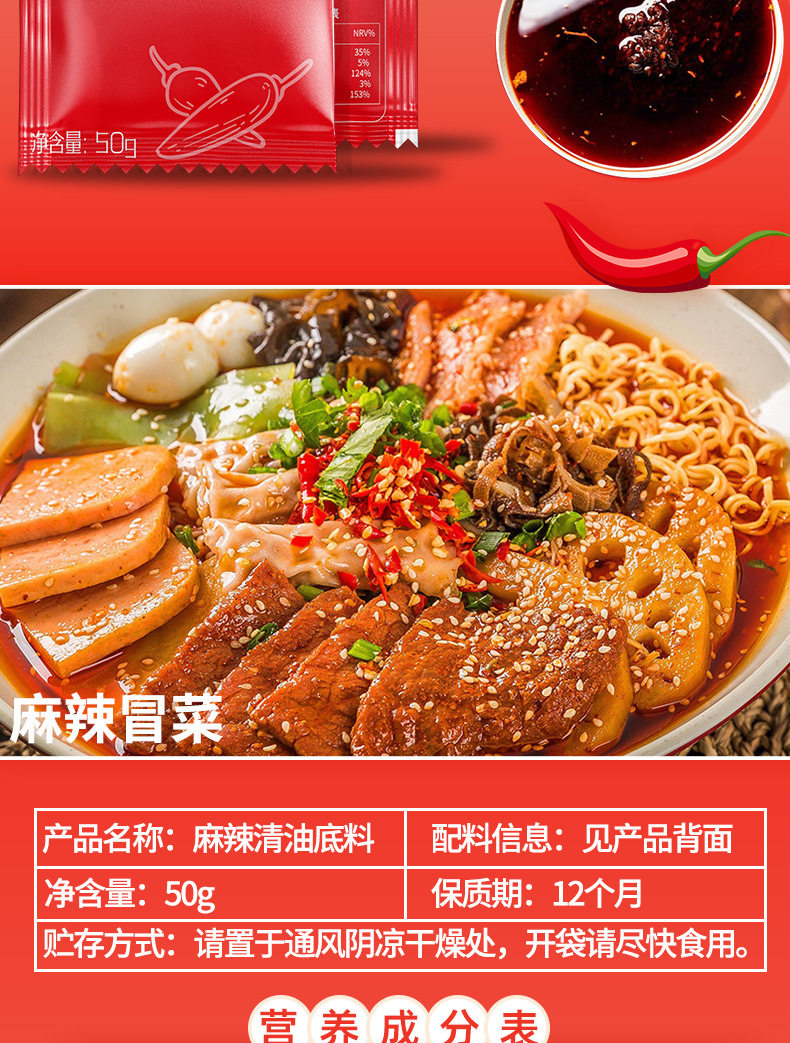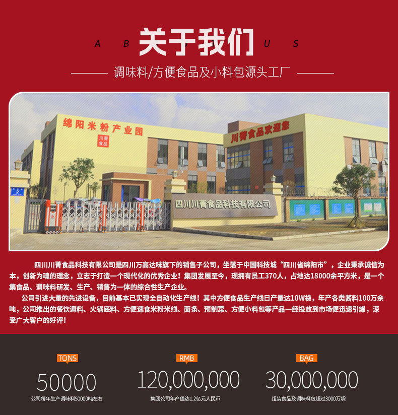 | Raw materials and ingredients | Vegetable oil, pepper, soy sauce, brewing vinegar, edible salt, white sand sugar, spices, food additives |