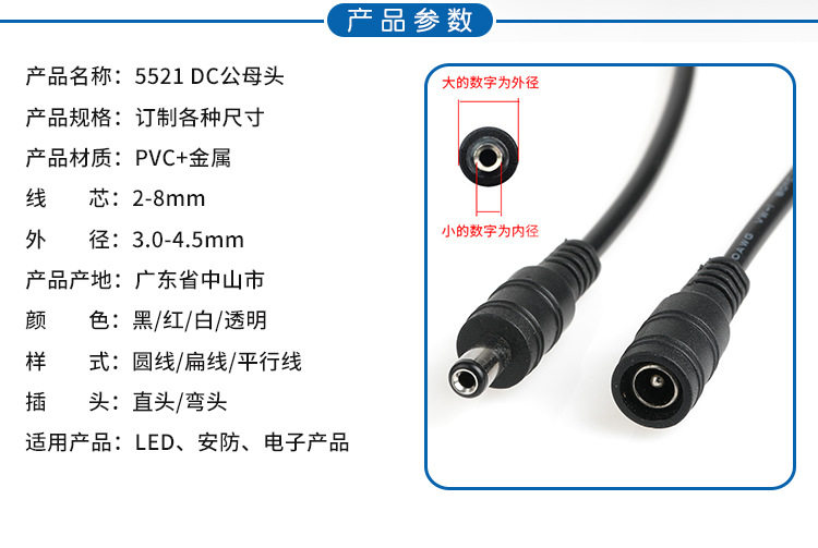 dc line power line dc male bus line bold 0.5 0.75 square dc connection line double head dc charging line 5525