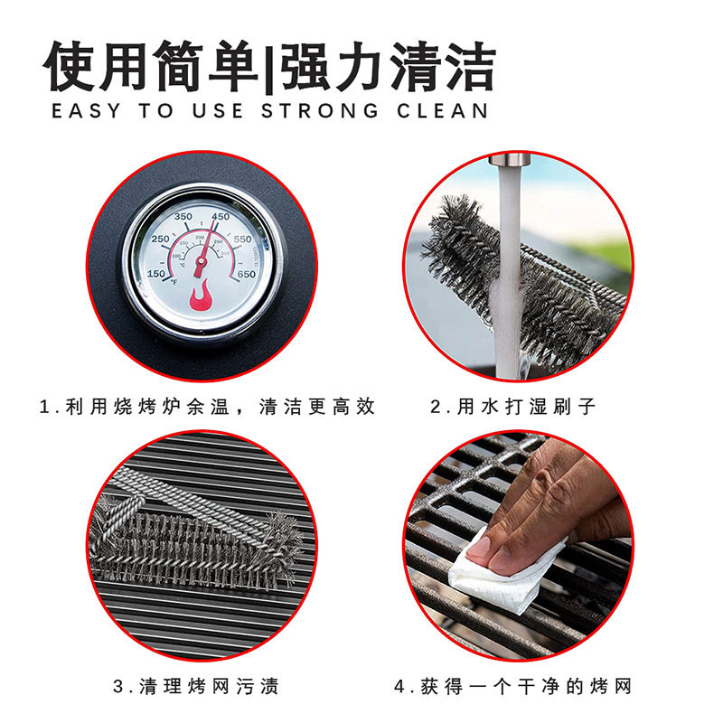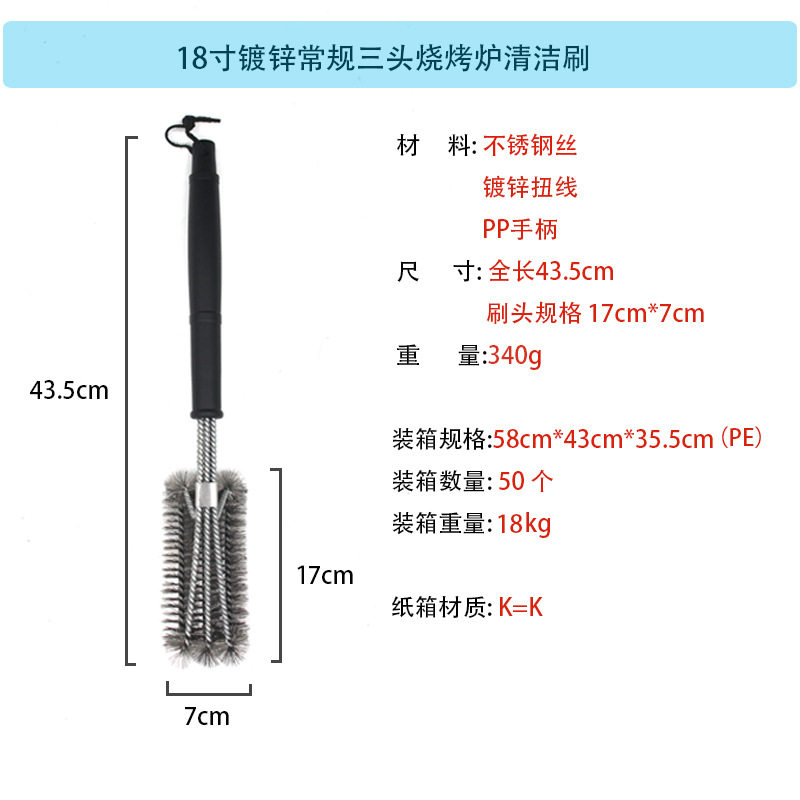 Amazon hot selling BBQ Barbecue brush 18 inch three wire grill brush grill grill cleaning brush spot