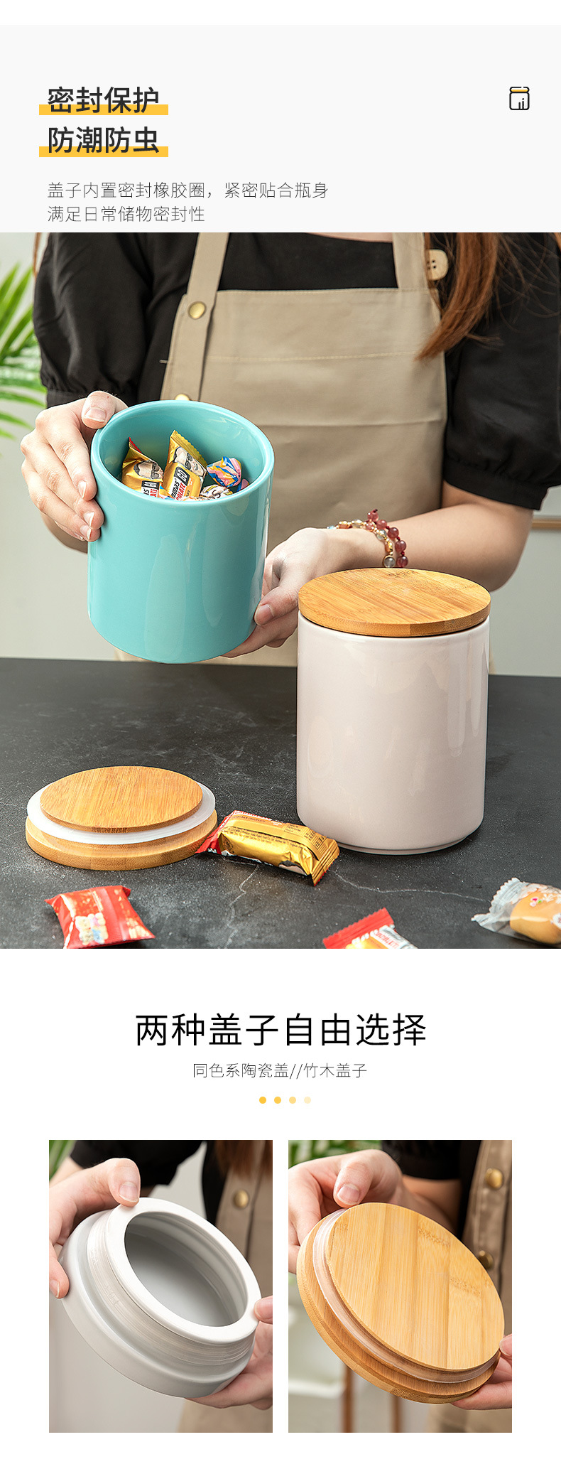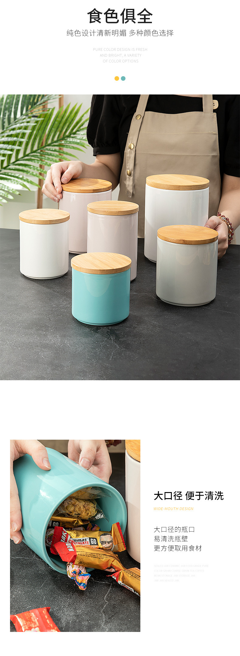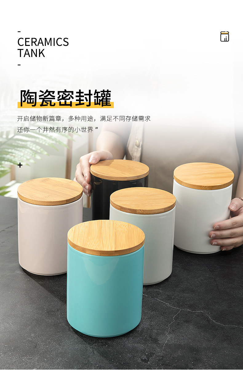 Ceramic Sealed Jar Combination Porcelain Lid Wooden Lid Kitchen Coffee Coarse Grain Biscuit Snack Storage Jar Spice Jar Wholesale