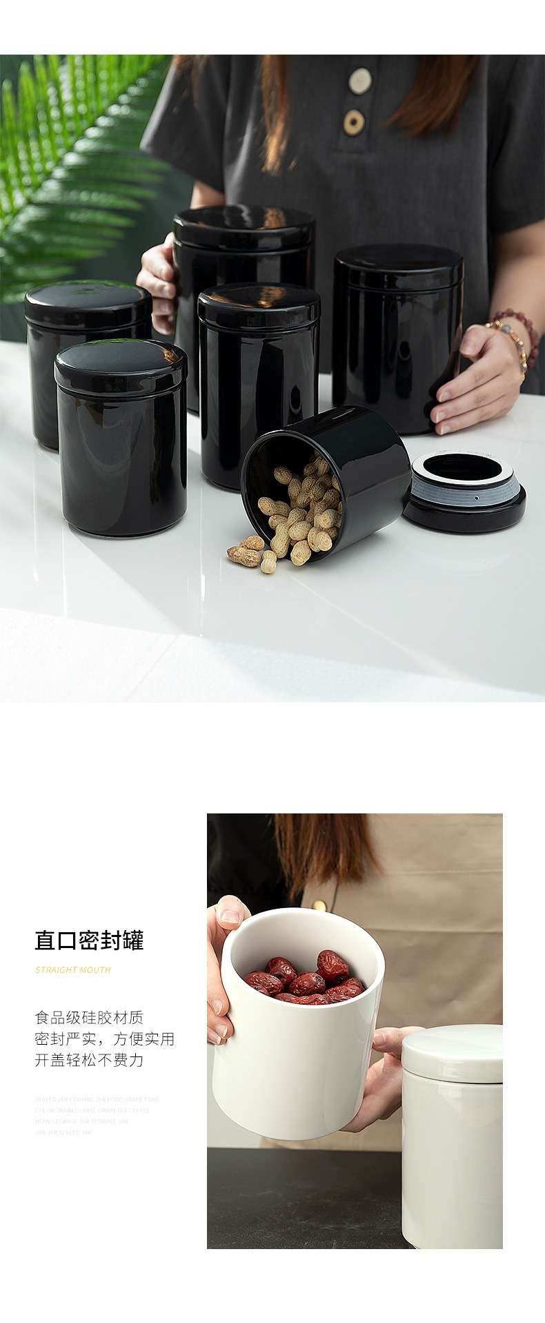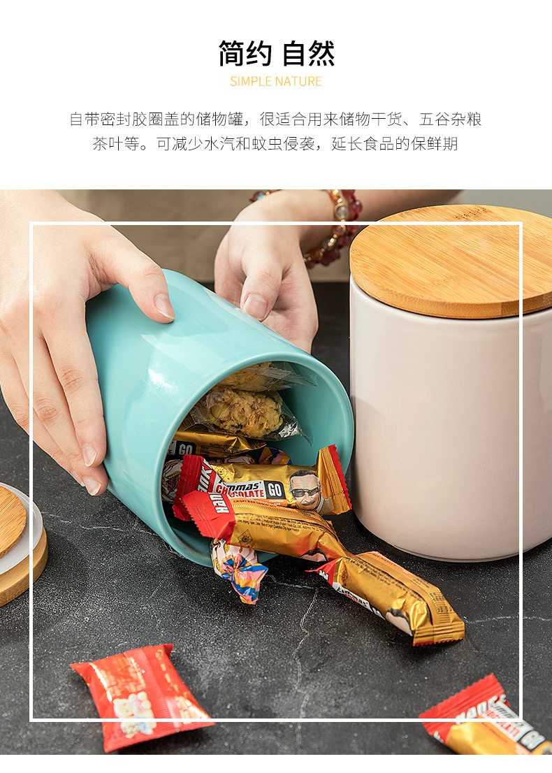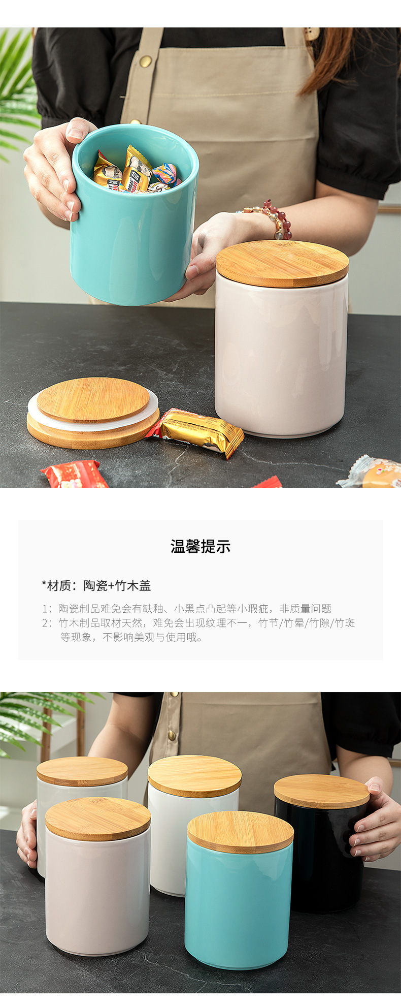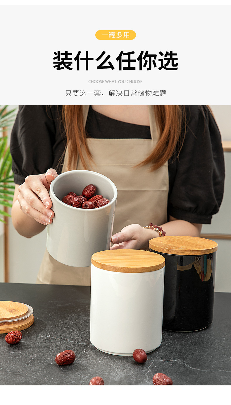 Ceramic Sealed Jar Combination Porcelain Lid Wooden Lid Kitchen Coffee Coarse Grain Biscuit Snack Storage Jar Spice Jar Wholesale