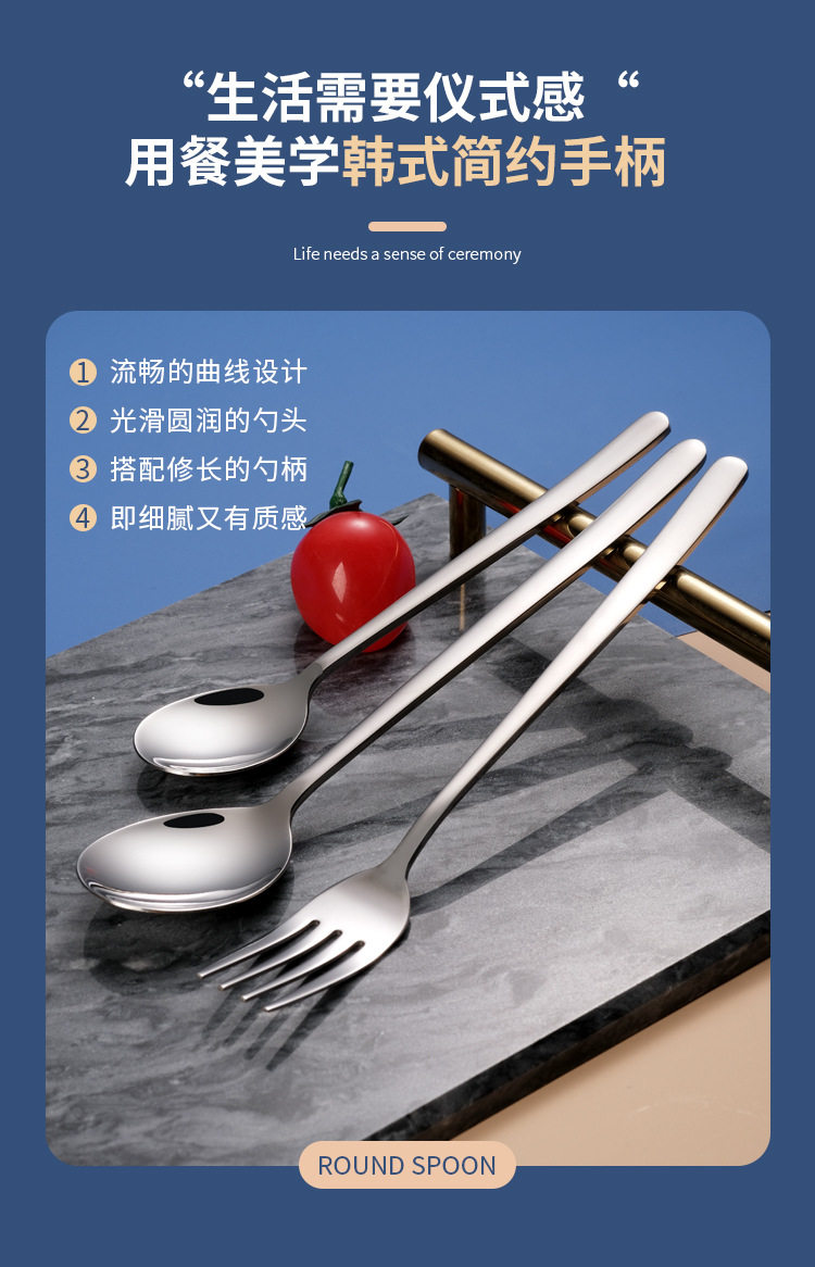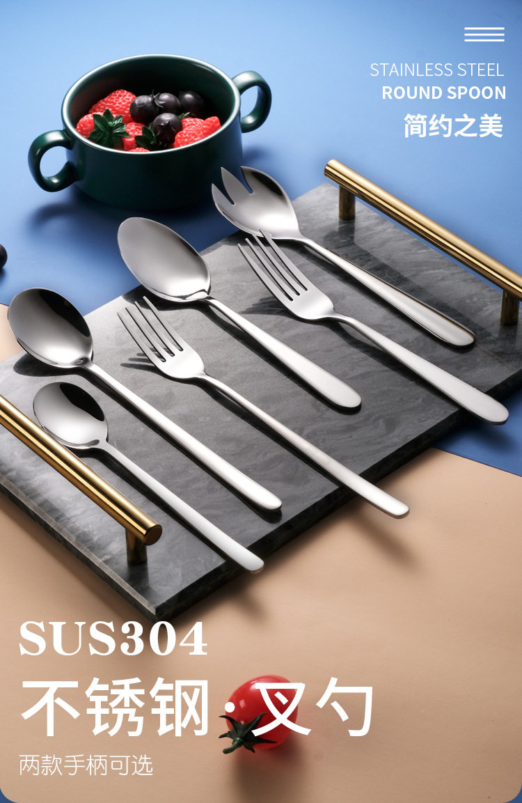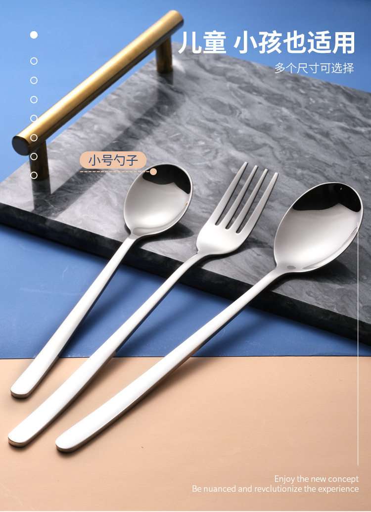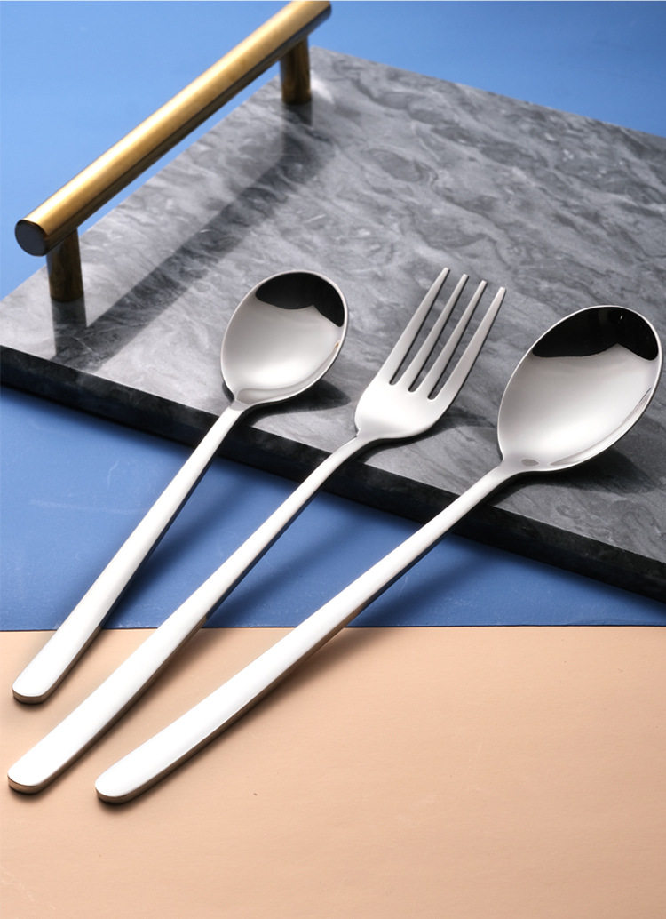 Processing and Customization of Western Tableware Knife, Fork and Spoon Set, Smooth Handle Stainless Steel Spoon, Fork, Steak Knife and Spoon, Export Quality