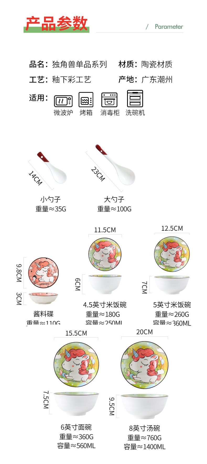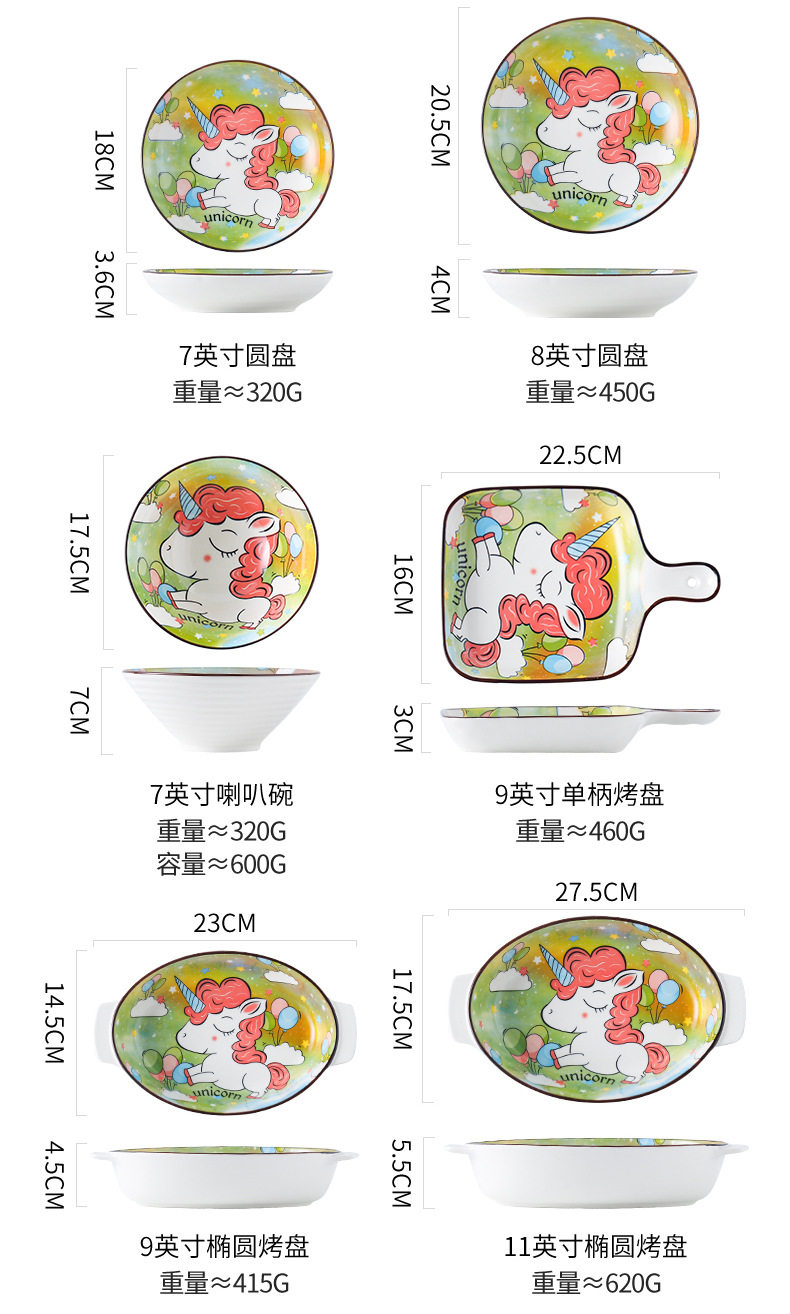 | Item No. | Cartoon unicorn ceramic bowl plate tableware |