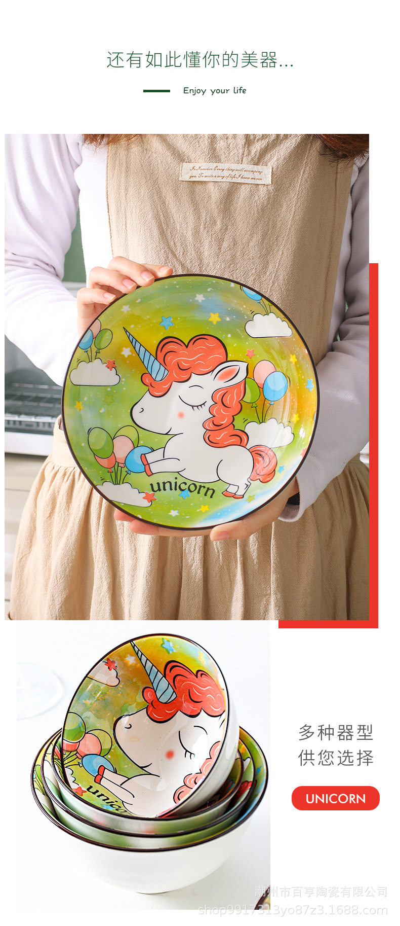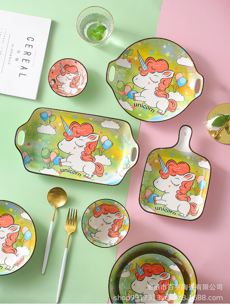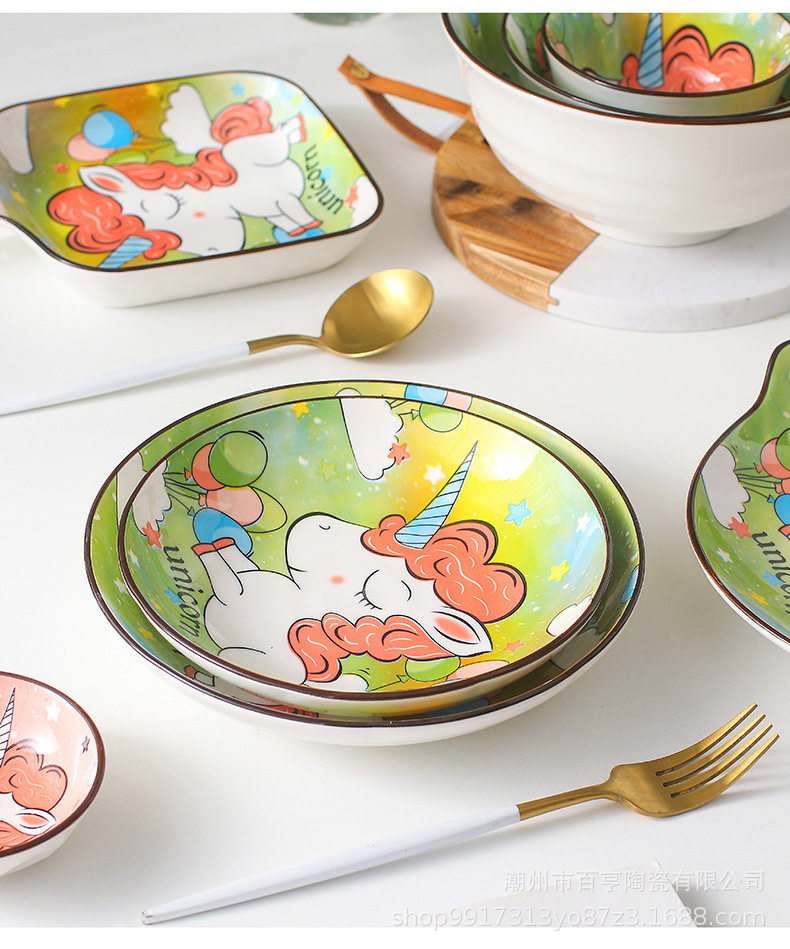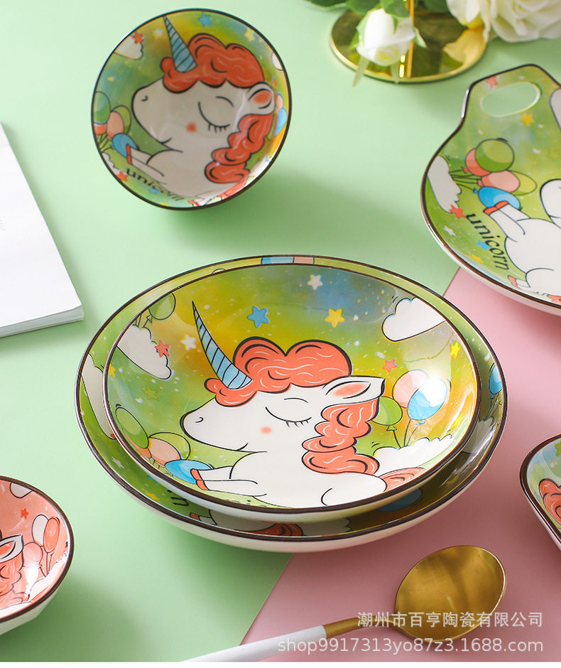 Unicorn ceramic bowl plate Japanese cartoon hand-painted tableware cute household children's rice noodle bowl dish plate suit
