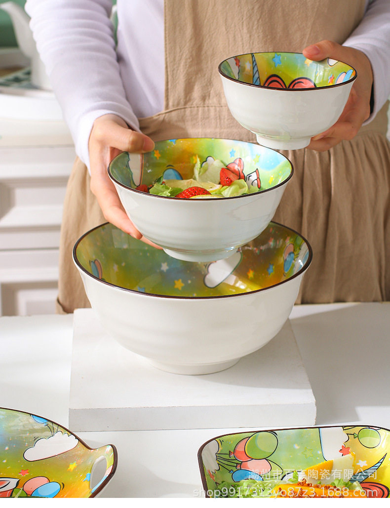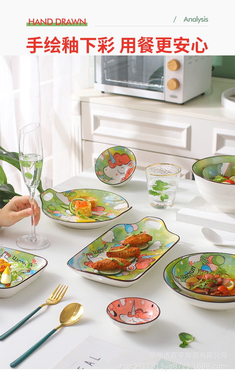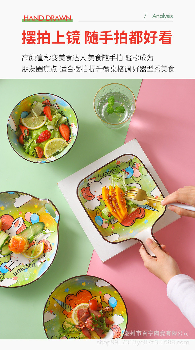 Unicorn ceramic bowl plate Japanese cartoon hand-painted tableware cute household children's rice noodle bowl dish plate suit