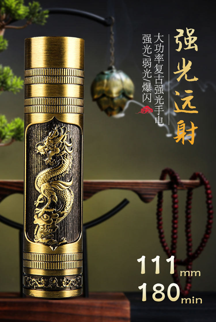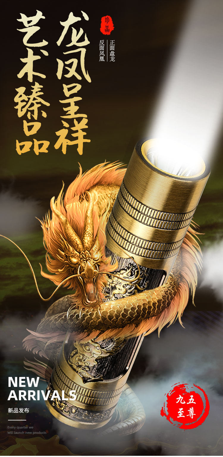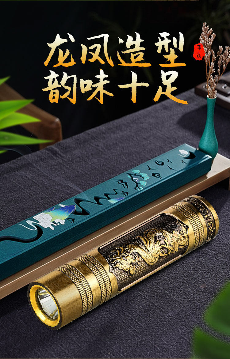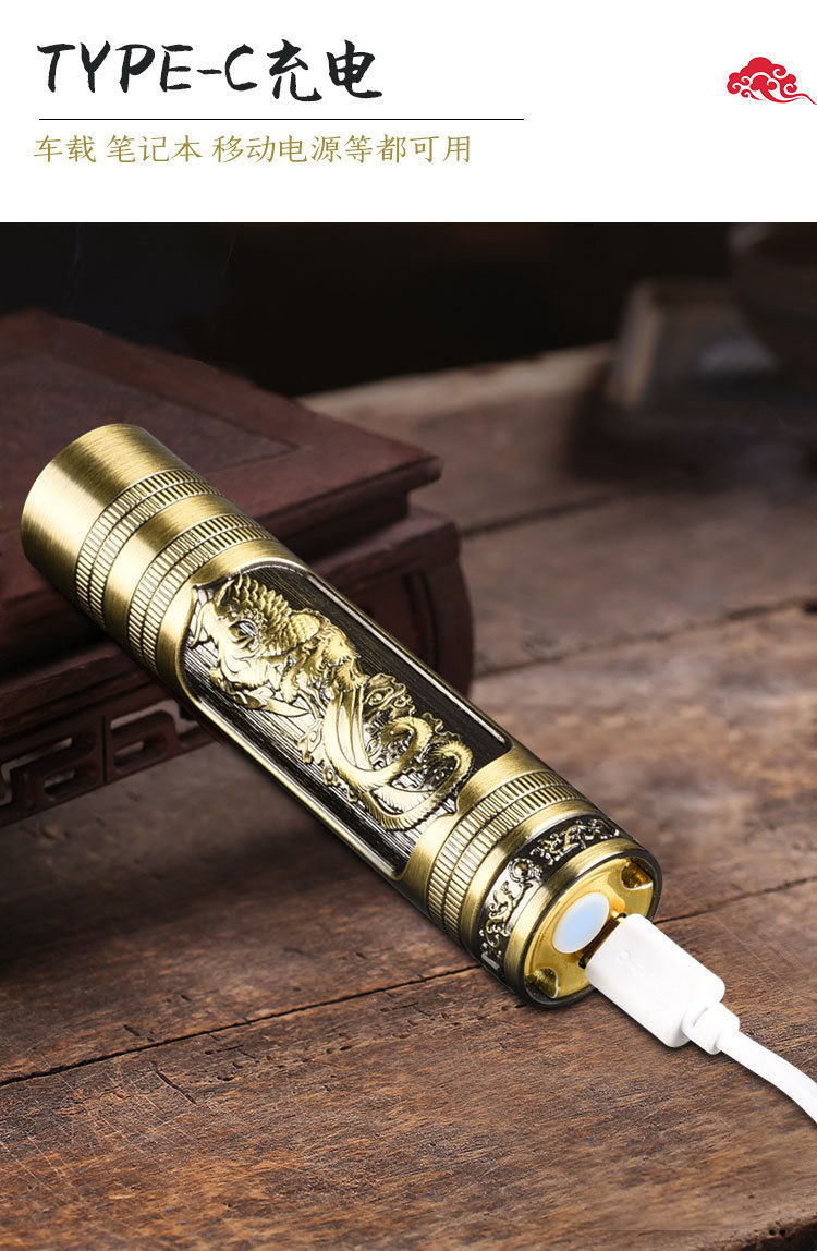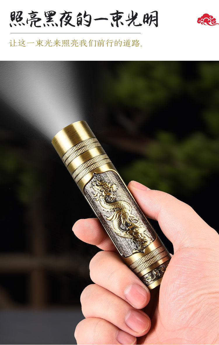 New Portable Mini Flashlight USB Rechargeable Dragon and Phoenix Zoom Strong Light Outdoor Lighting Led Flashlight Rechargeable