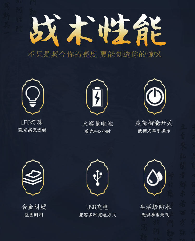 | Applicable environment | Hiking,Camping,Self-Defense,Teaching,Search,Daily carry,Night Ride,Caves,Night fishing,Patrol,9201344 |