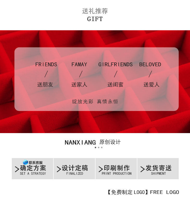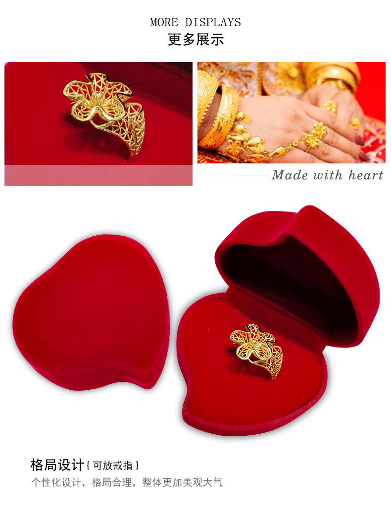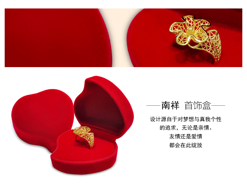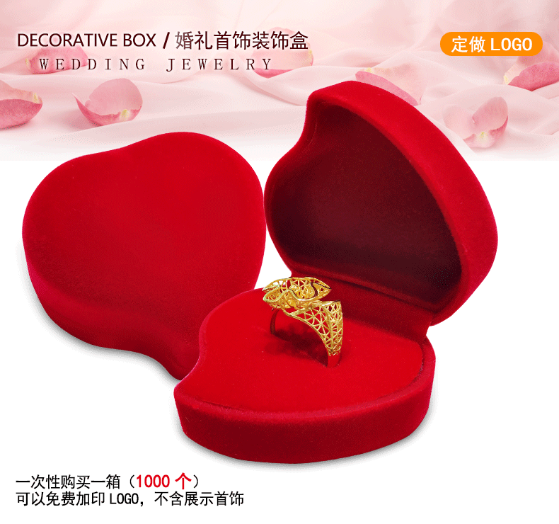 Nanxiang Jewelry Jewelry Box Flocking Big Red Printed Logo Gold Storage Box Wedding Supplies Ring Earrings