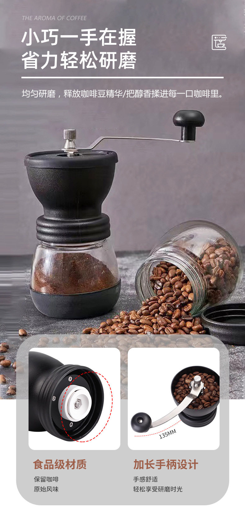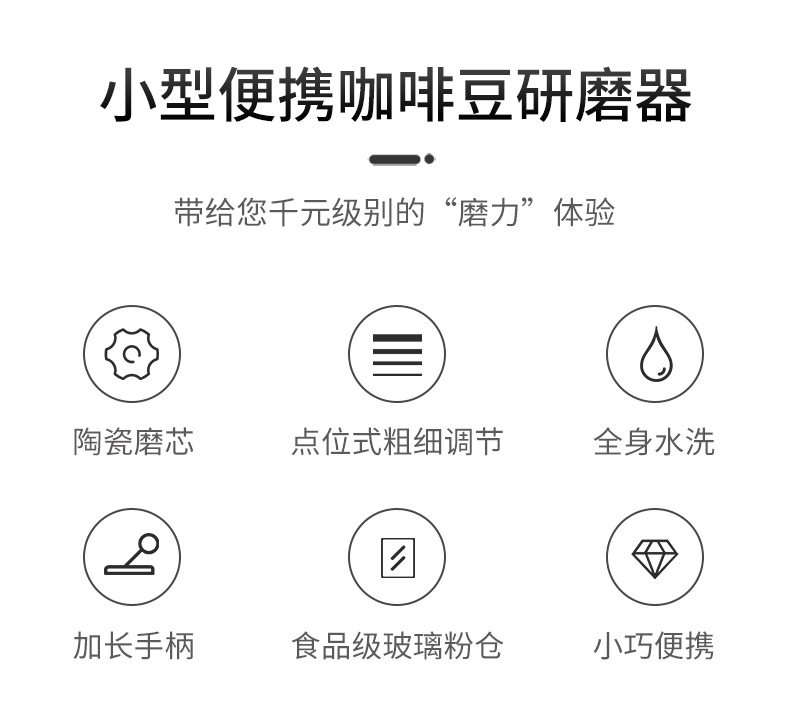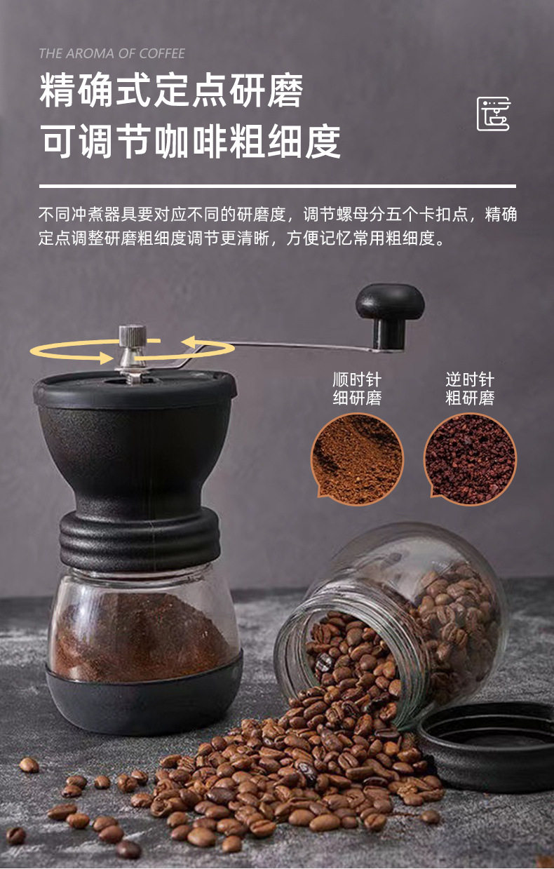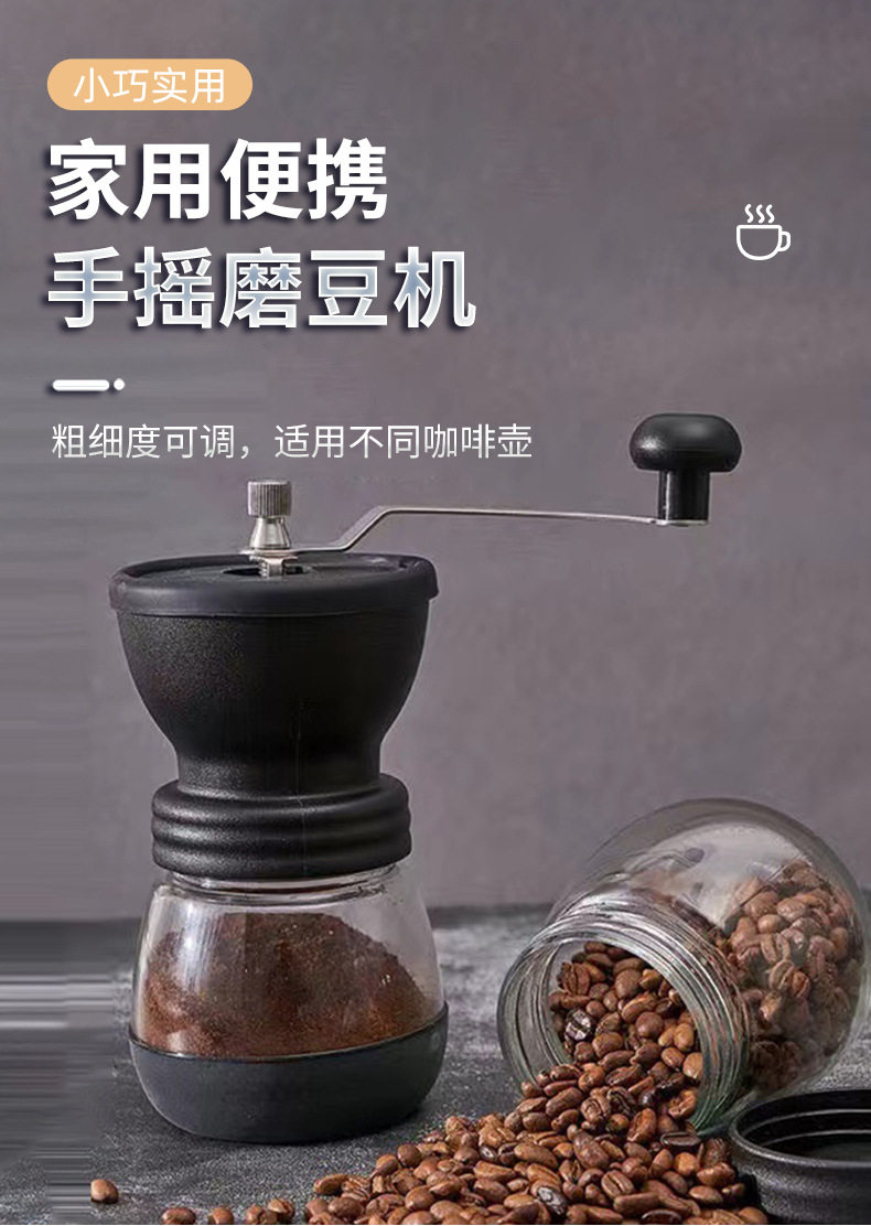 | Specifications | Black Coffee Mill,Black Coffee Mill (with coffee spoon),Black Coffee Mill (with cleaning brush),Black Coffee Mill (with coffee can),Black Coffee Mill (coffee can + coffee spoon + cleaning brush) |