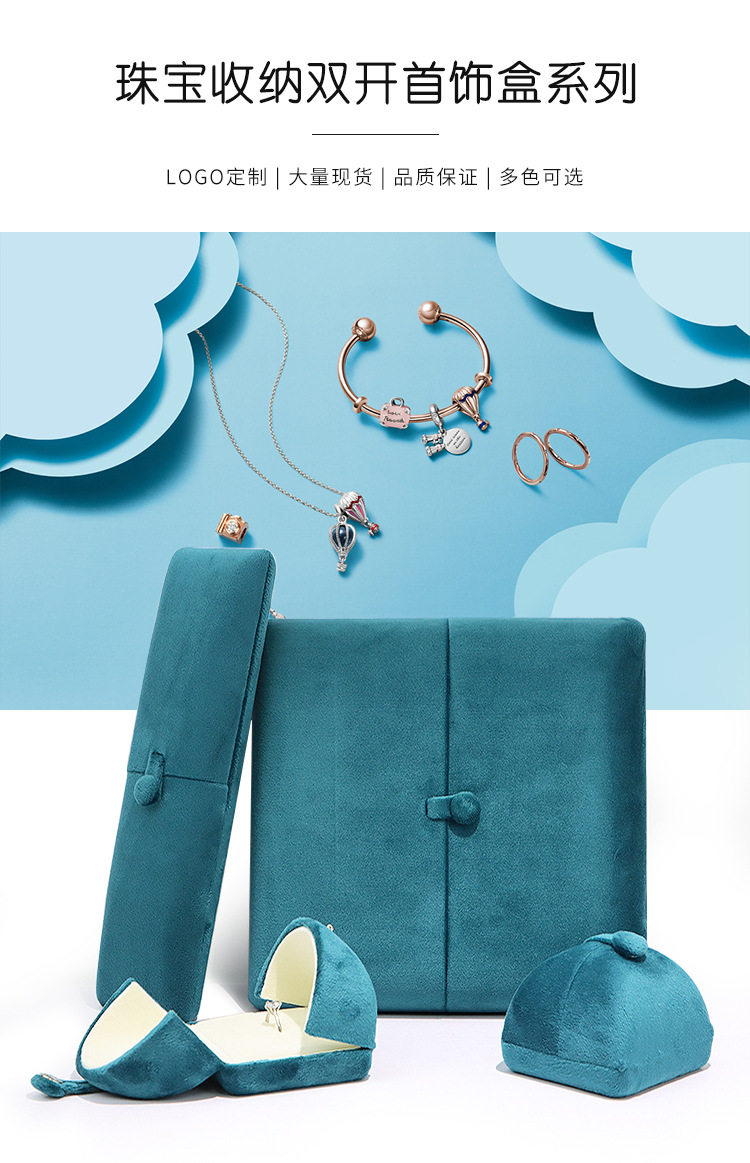 Jewelry Velvet Double-Open Ring Box Necklace Box Jewelry Box Packaging Box Earring Gift Box Bracelet Wholesale Pearl Box