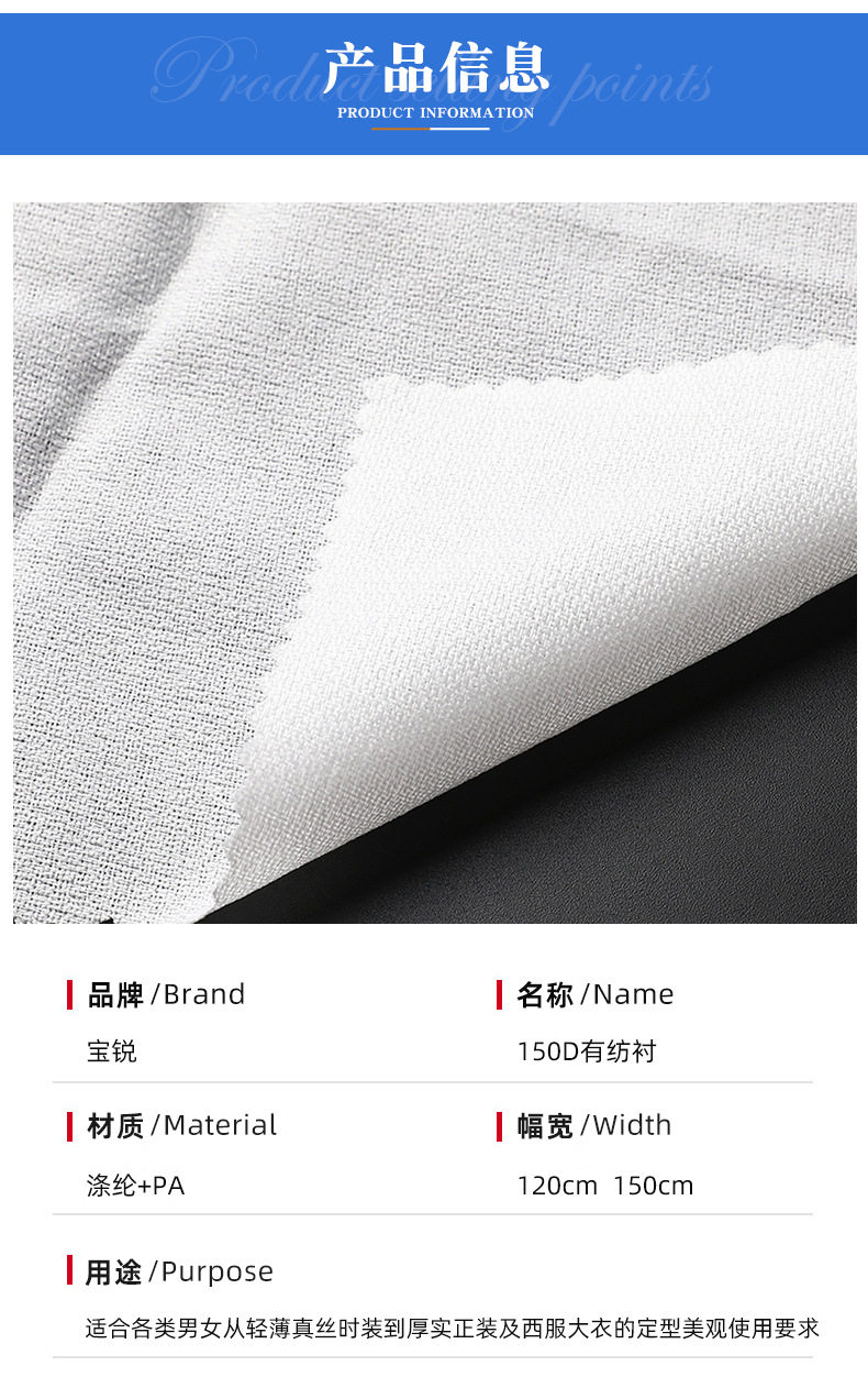 Factory Supplies 1.5m Door-Width 150D Bonded Woven Interlining Fabric for Home Textiles, Suits, and Clothing Accessories, Soft and Woven