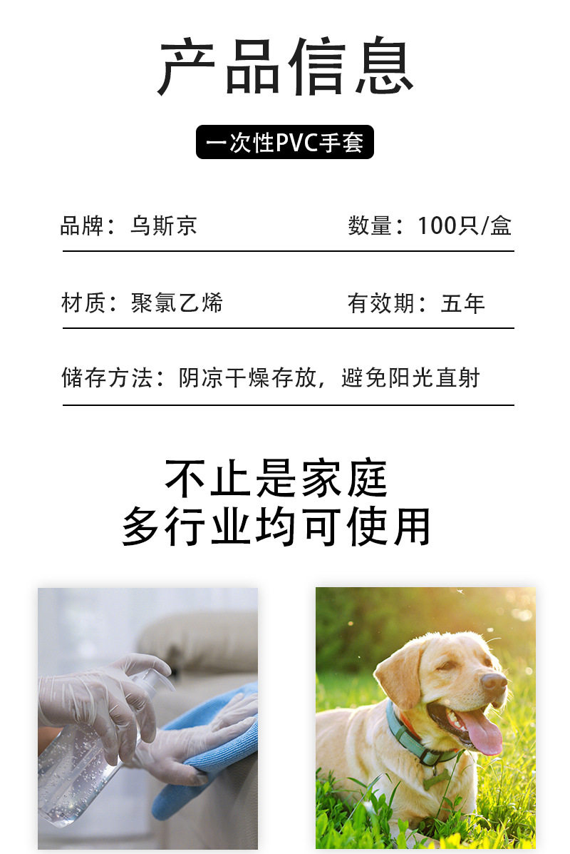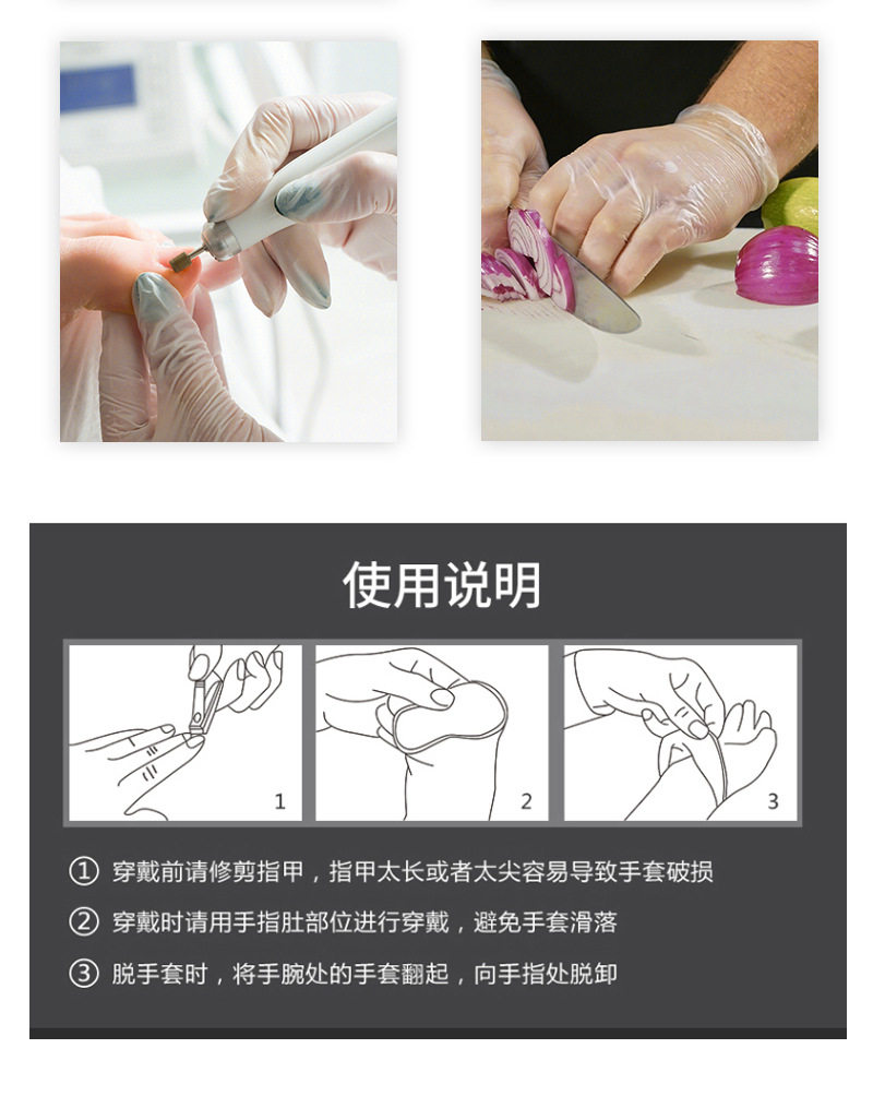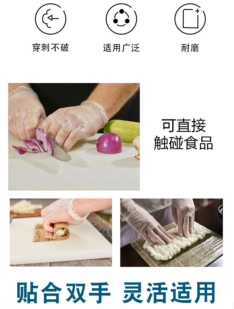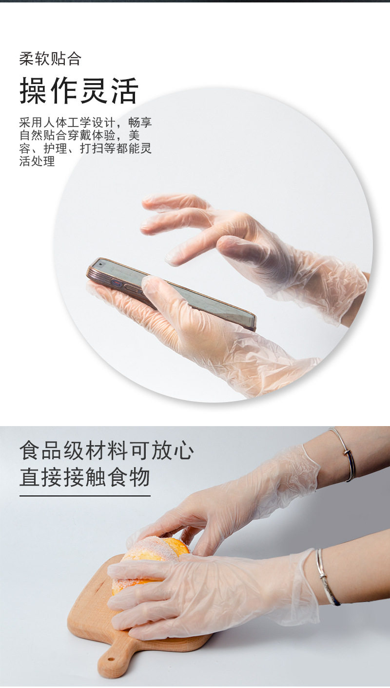 Usijing food grade disposable PVC gloves film thickened baking dining kitchen beauty transparent family