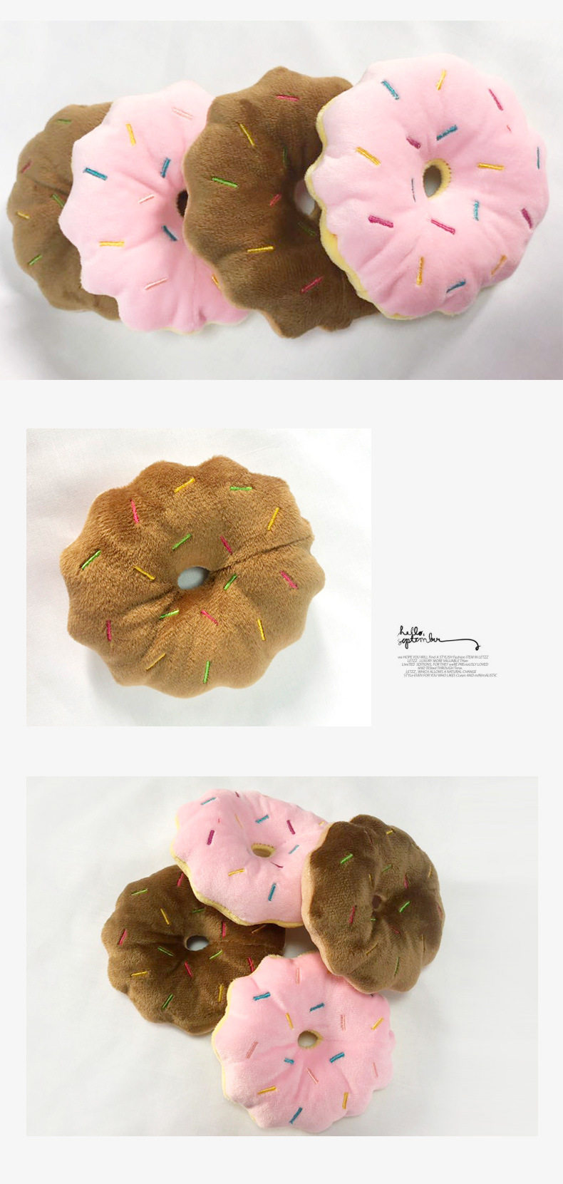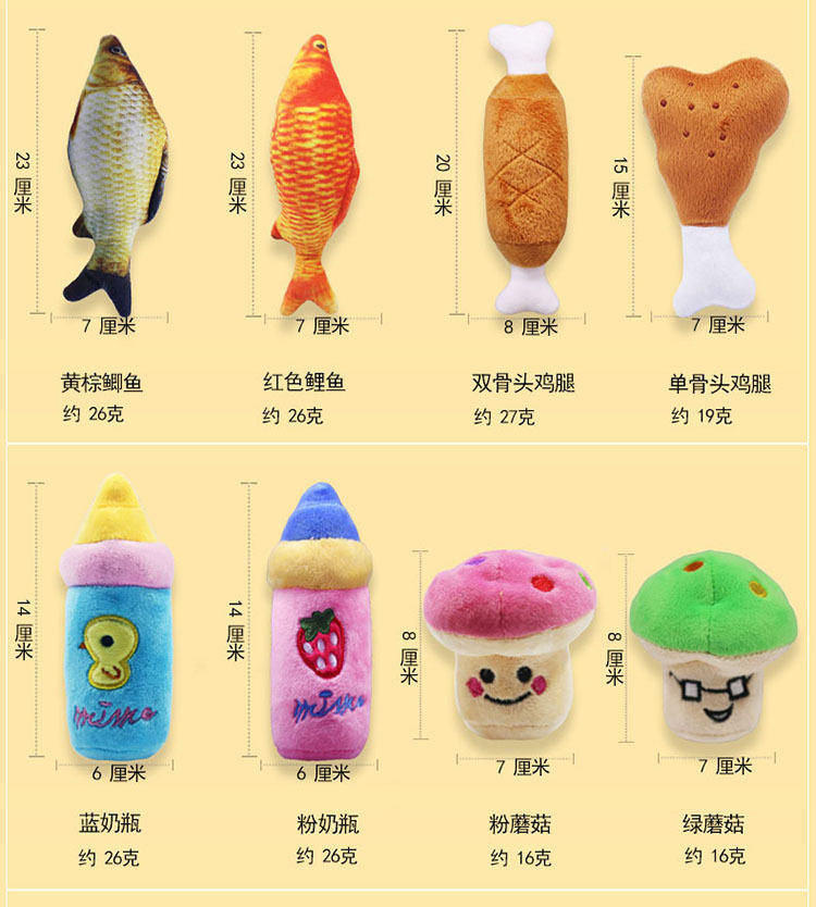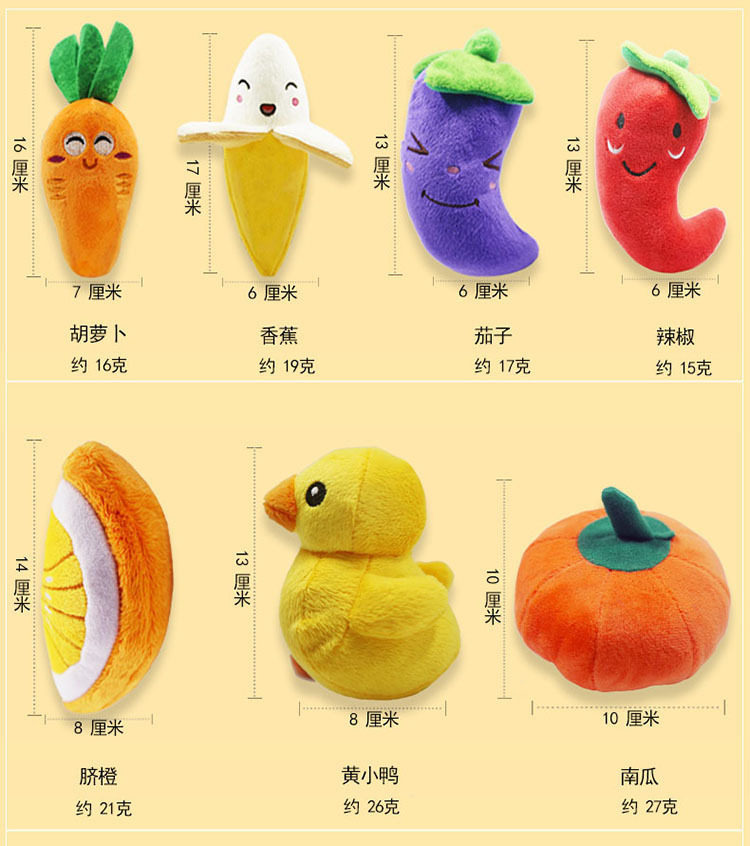 | Specifications | Vocal Yellow Duckling toy,Carrot vocalization,Red pepper vocalization,Purple eggplant vocalization,Watermelon Block,Navel Orange vocalization,Double bone chicken leg sound toy,Pumpkin Sound Toy,Embroidered red strawberry,Banana sound toy,Red Crayfish Sound Plush Toy,Orange Crab,Green cucumber,Red Apple,Pork belly,Hamburg,French Fries,Watermelon,Broccoli,Avocado,Chicken Leg,Ice cream (2 colors) Specific colors need to be noted,Shell (2 colors) specific color to note,Mushrooms (2 colors) Specific colors need to be noted,The specific color of the bottle (2 colors) needs to be noted.,Birthday cake (2 colors) specific color to note,Donuts (2 colors) specific color to note,Dinosaur (3 colors) Specific colors need to be noted,Long animals (3 colors) specific colors need to be noted,The specific color of wild goose (3 colors) shall be noted.,Animal lollipop (3 colors) specific color to note,Lollipop (4 colors) specific color notes,Stars (5 colors) specific colors need to be noted,Deer (3 colors) specific color to note,Cute small animals (3) specific styles need to be noted,Flamingo,Clouds (2 colors) White Blue |