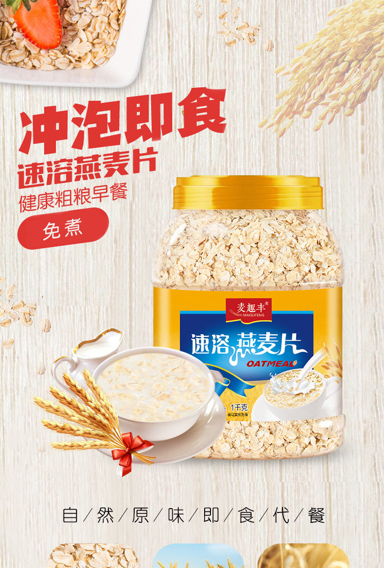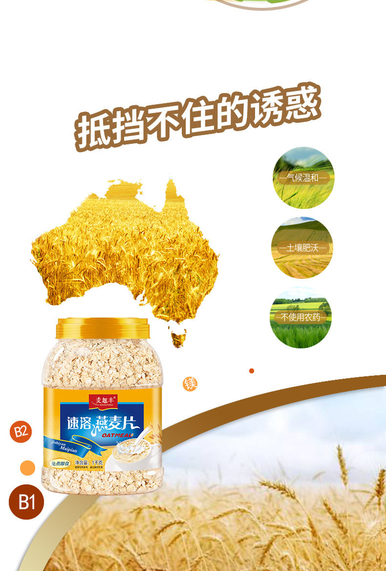 Maiqufeng Instant Oatmeal Australian Instant Oatmeal Oatmeal Fruit Oatmeal 1000g Barrel Ready for Delivery