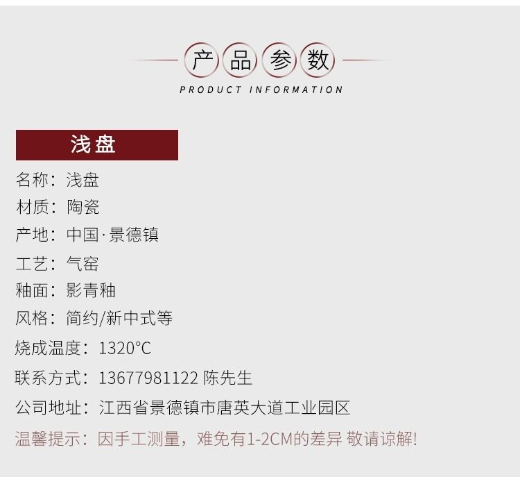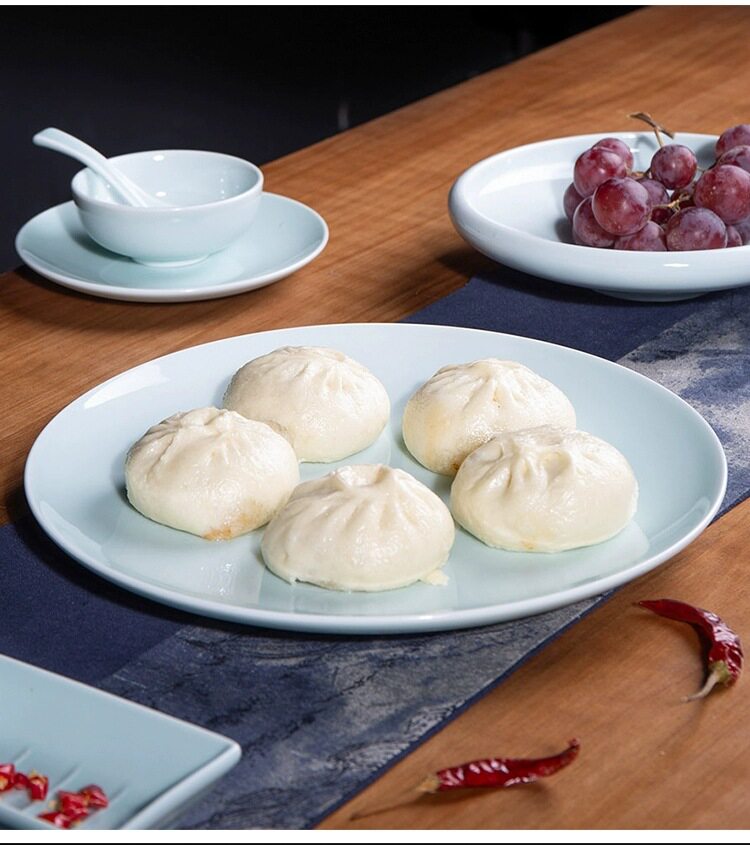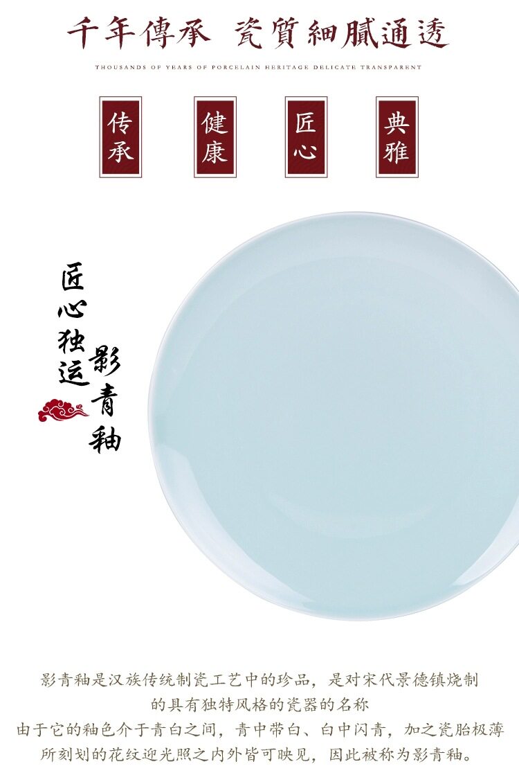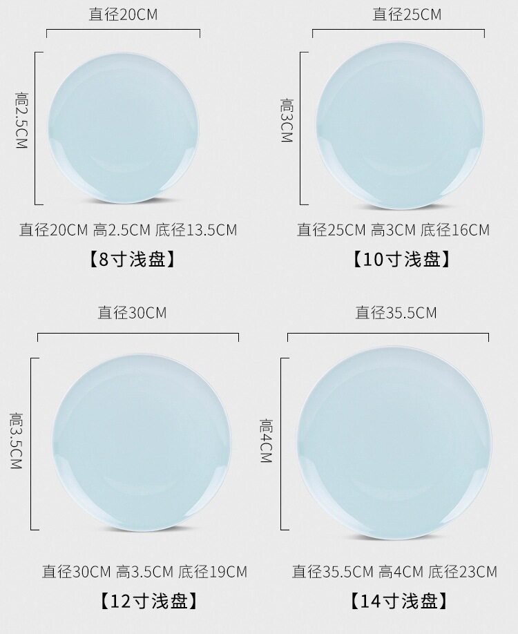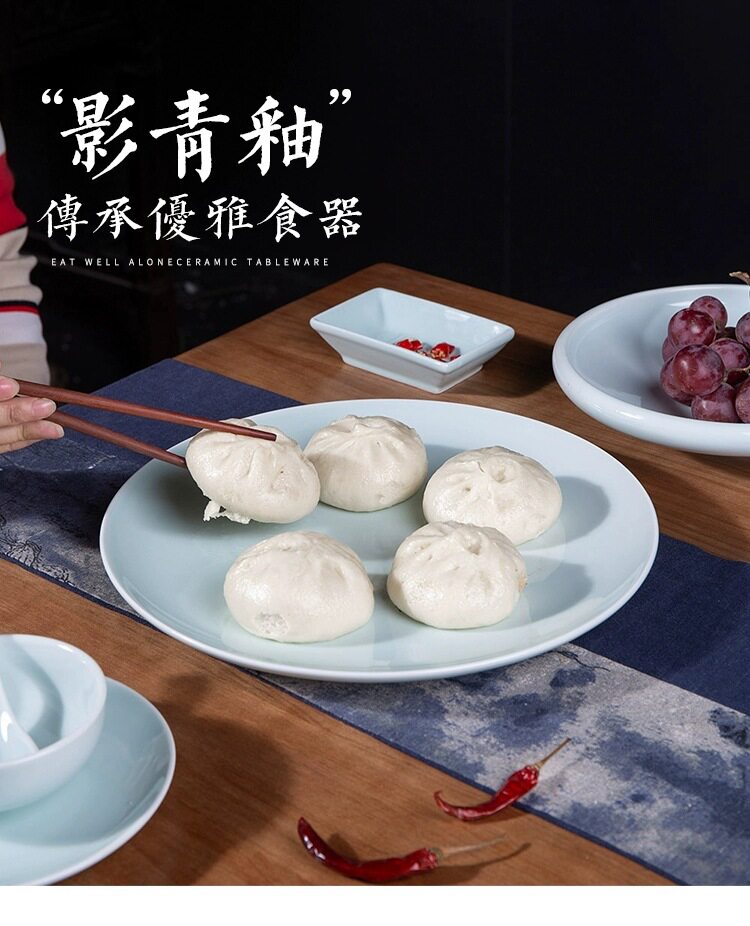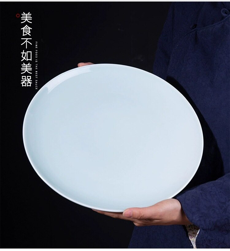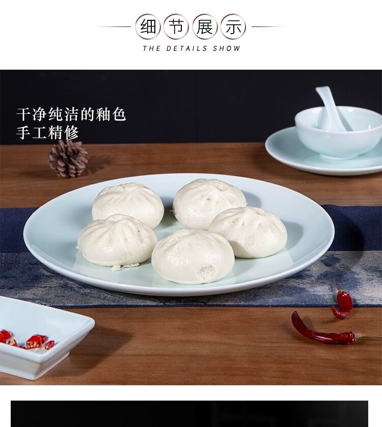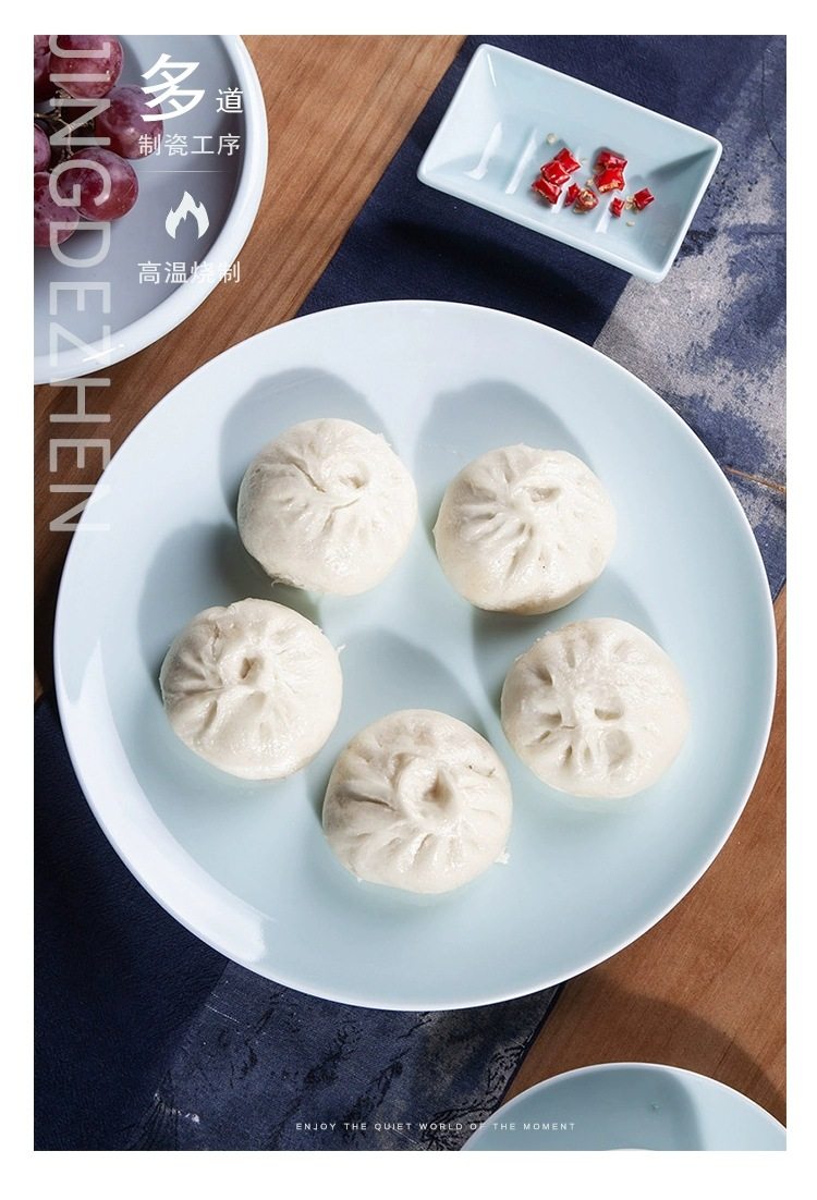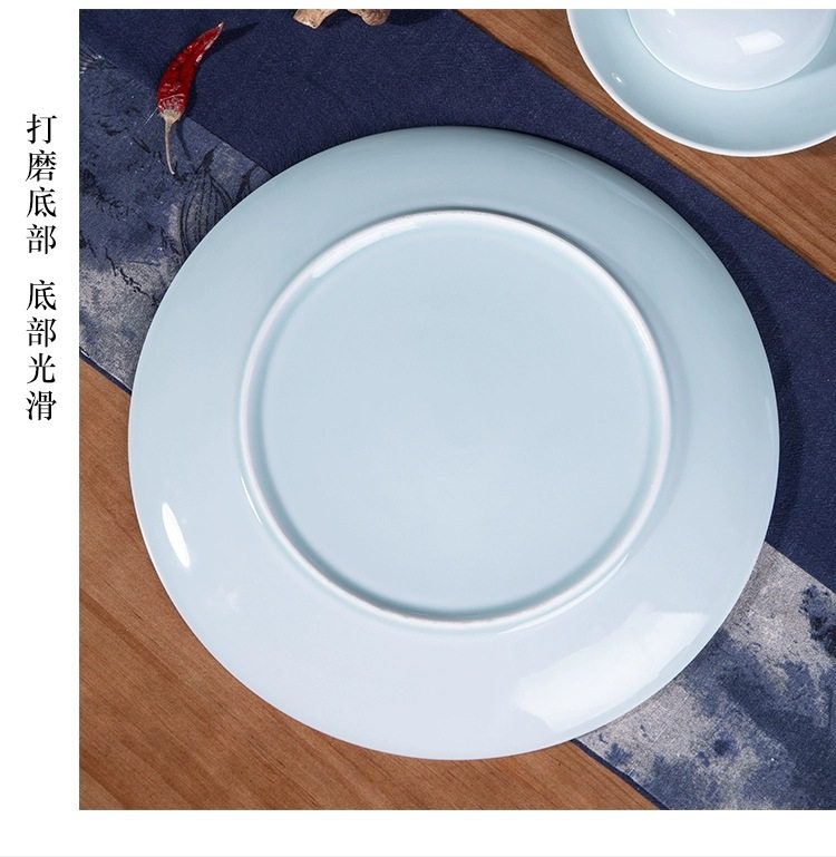 Jingdezhen Celadon Hotel Restaurant Household Ceramic Vintage Shallow Plate Flat Plate Western Food Plate Disc Dim Sum Plate Customizable