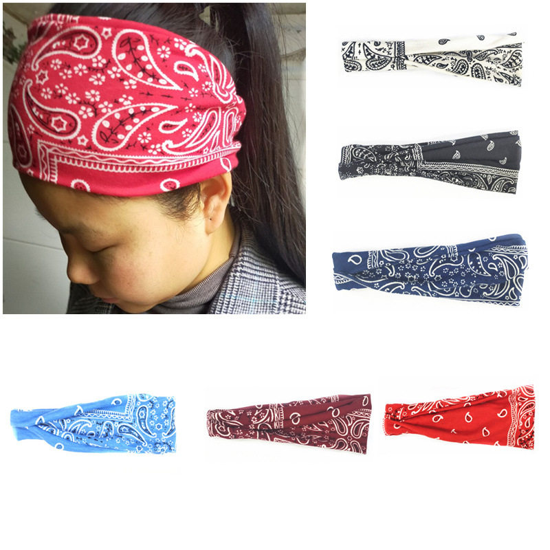 European and American new cashew nut women's sports headband yoga hair band sweat-absorbent band wide-brimmed printed headscarf headdress