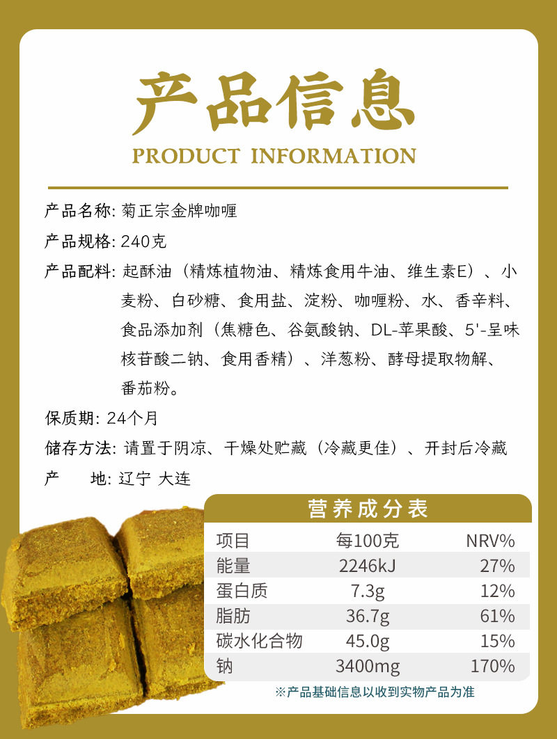 | Raw materials and ingredients | Shortening oil (refined vegetable oil, refined edible butter, vitamin E), wheat flour, white sugar, edible salt, starch, curry powder, water, spices, |
