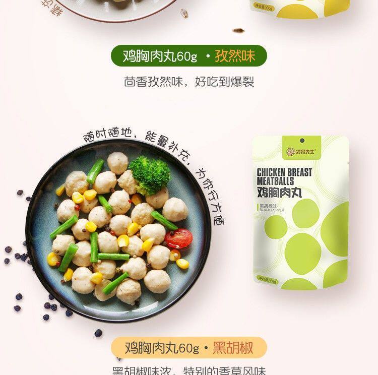 | Packaging specifications | 60g original chicken meatballs,60g cumin flavored chicken balls,60g black pepper chicken balls |