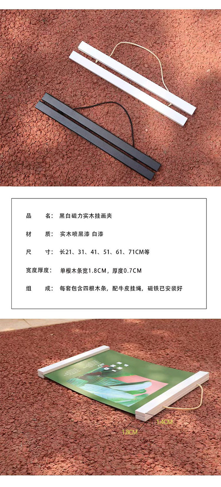 | Inner frame size | Pine black paint magnet hanging shaft,Pine white paint magnet hanging shaft,Pine original color magnet hanging shaft,Beech black paint magnet hanging shaft,Beech original color magnet hanging shaft |