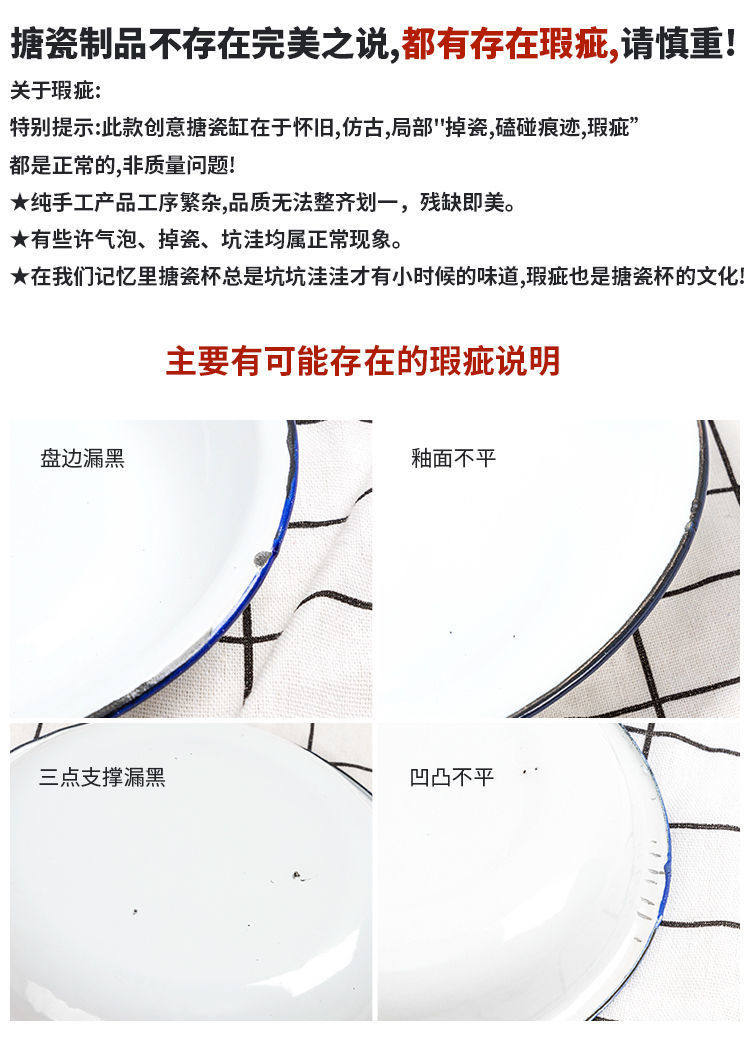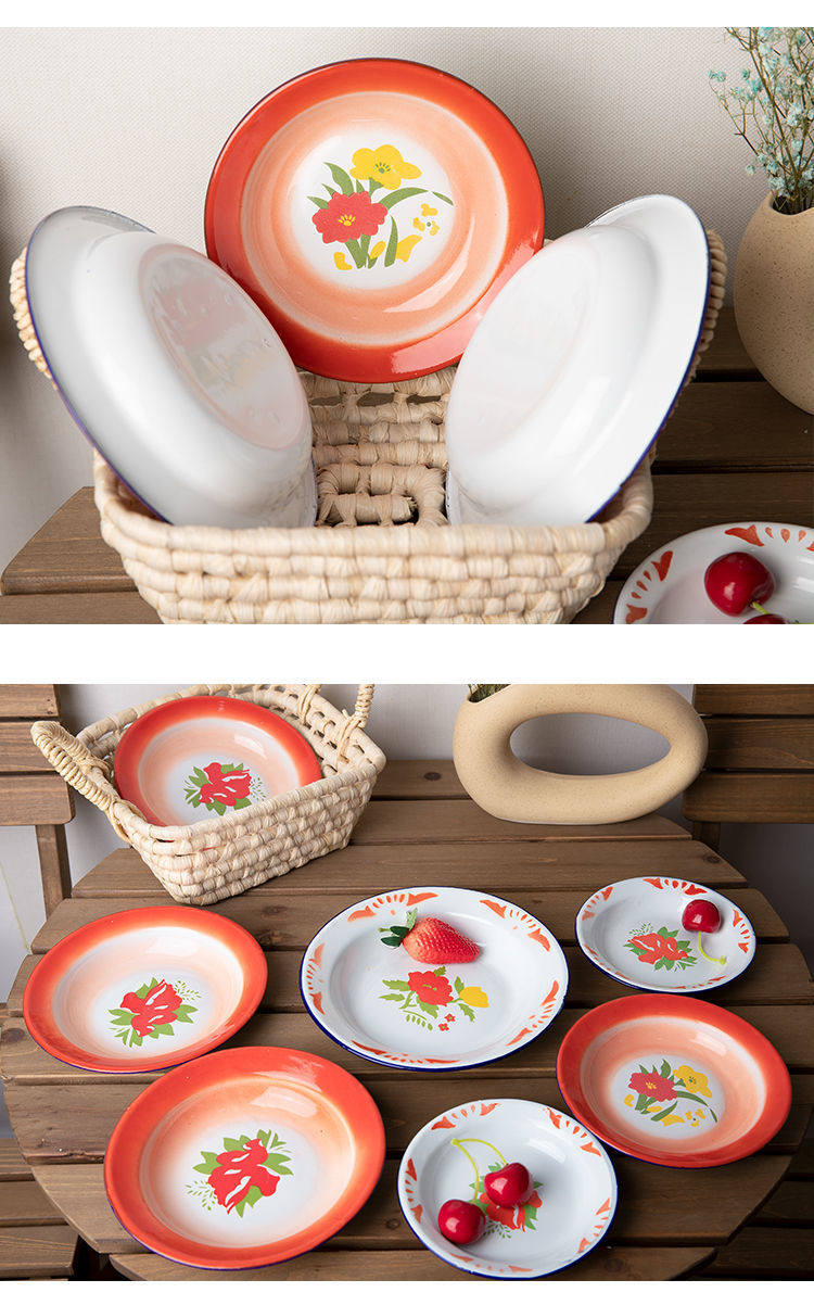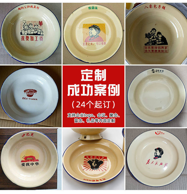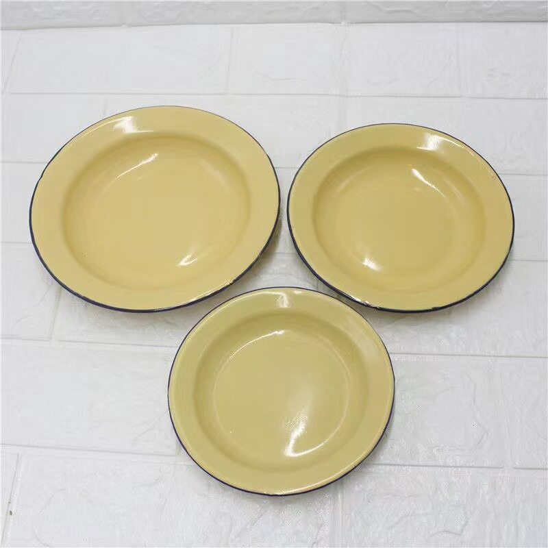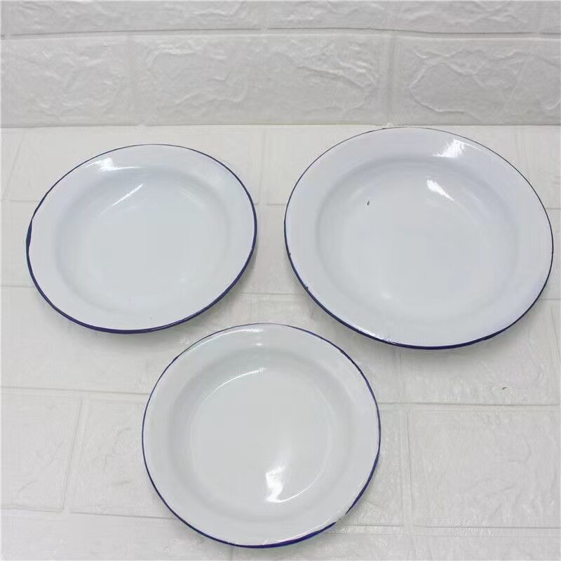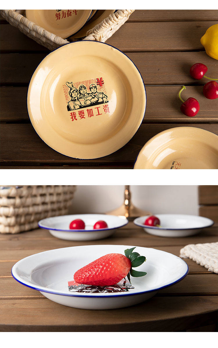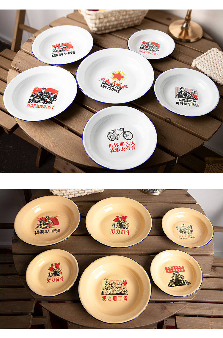 Factory Direct supply vintage round dish hot pot plate barbecue plate printable logo nostalgic enamel plate
