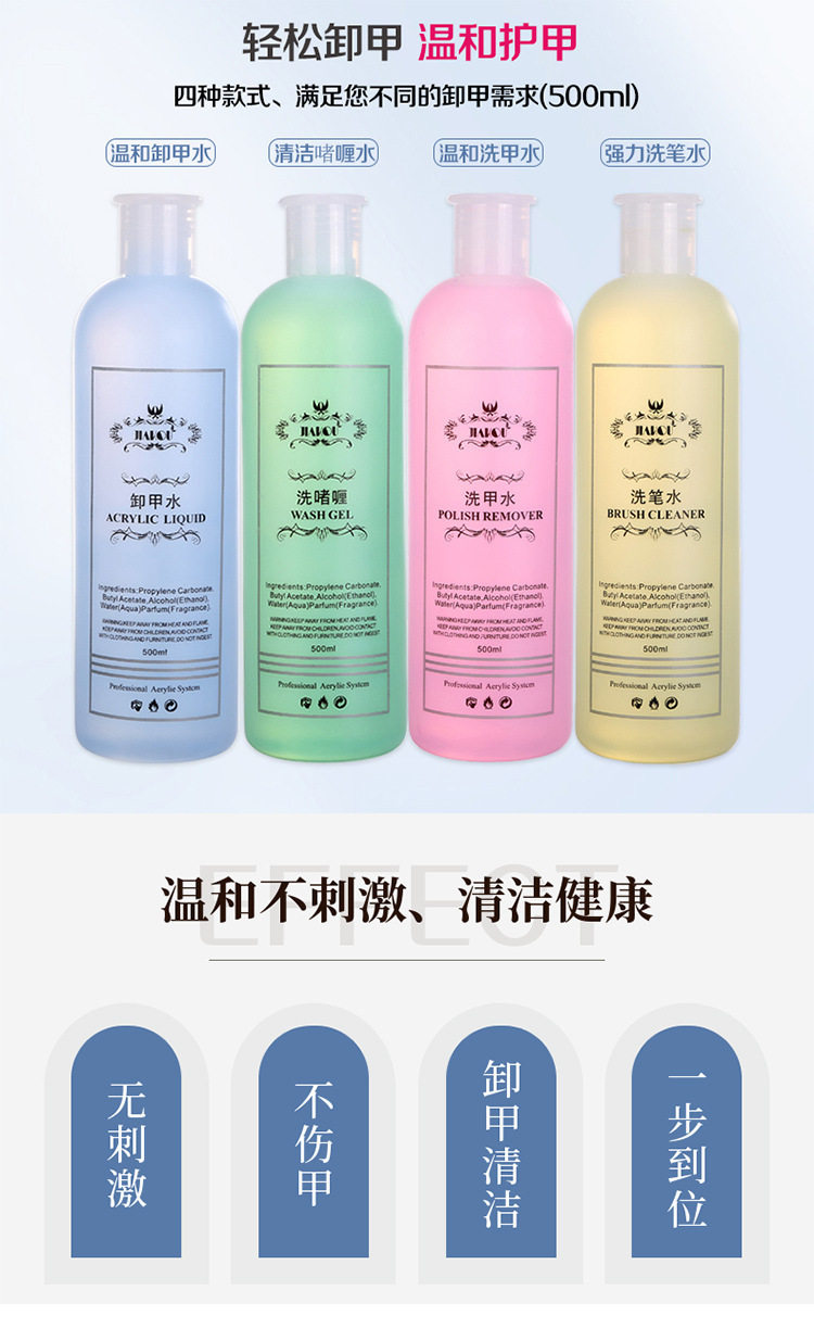 | Specifications | Discharge of water 1000ml,Nail polish rinse 1000ml,Pen wash water 1000ml,Cleaning water 1000ml,Thinner 1000ml,500ml tip softener,500ml tip nutrition oil,500ml pen washing water,500ml nail polish rinse,500ml clean water,500ml nail remover,1000ml nail polish unloading water (domestic retail),1000ml nail polish rinse (domestic retail),Pen wash water 1000mL (domestic retail),Clean water 1000mL (domestic retail) |