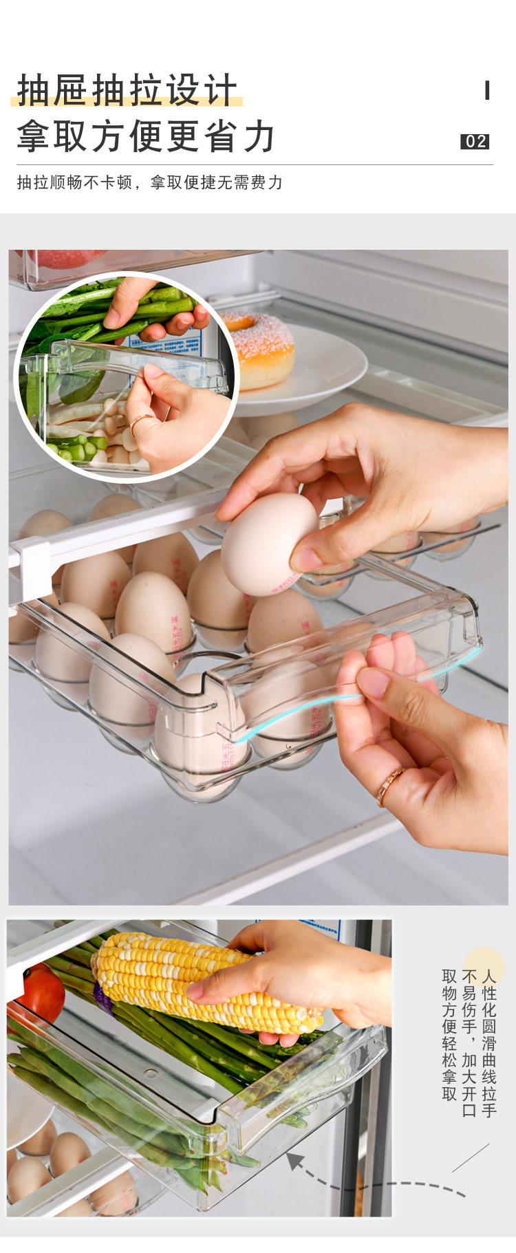 Refrigerator Storage Box Drawer Type Egg Rack Egg Holder Vegetable and Fruit Box Refrigerator Storage Box Household Plastic Preservation Box