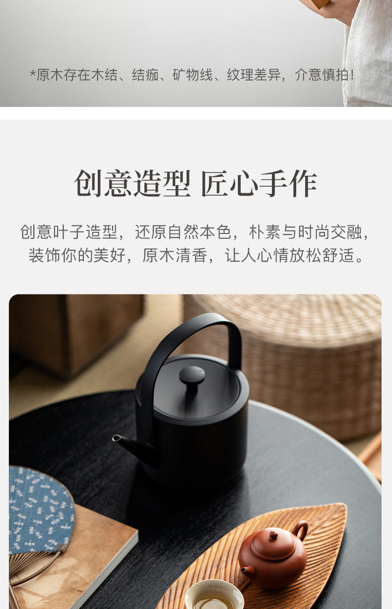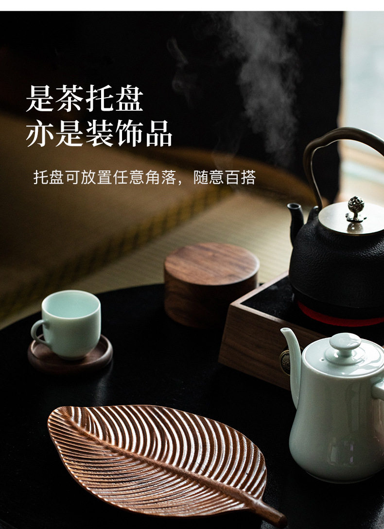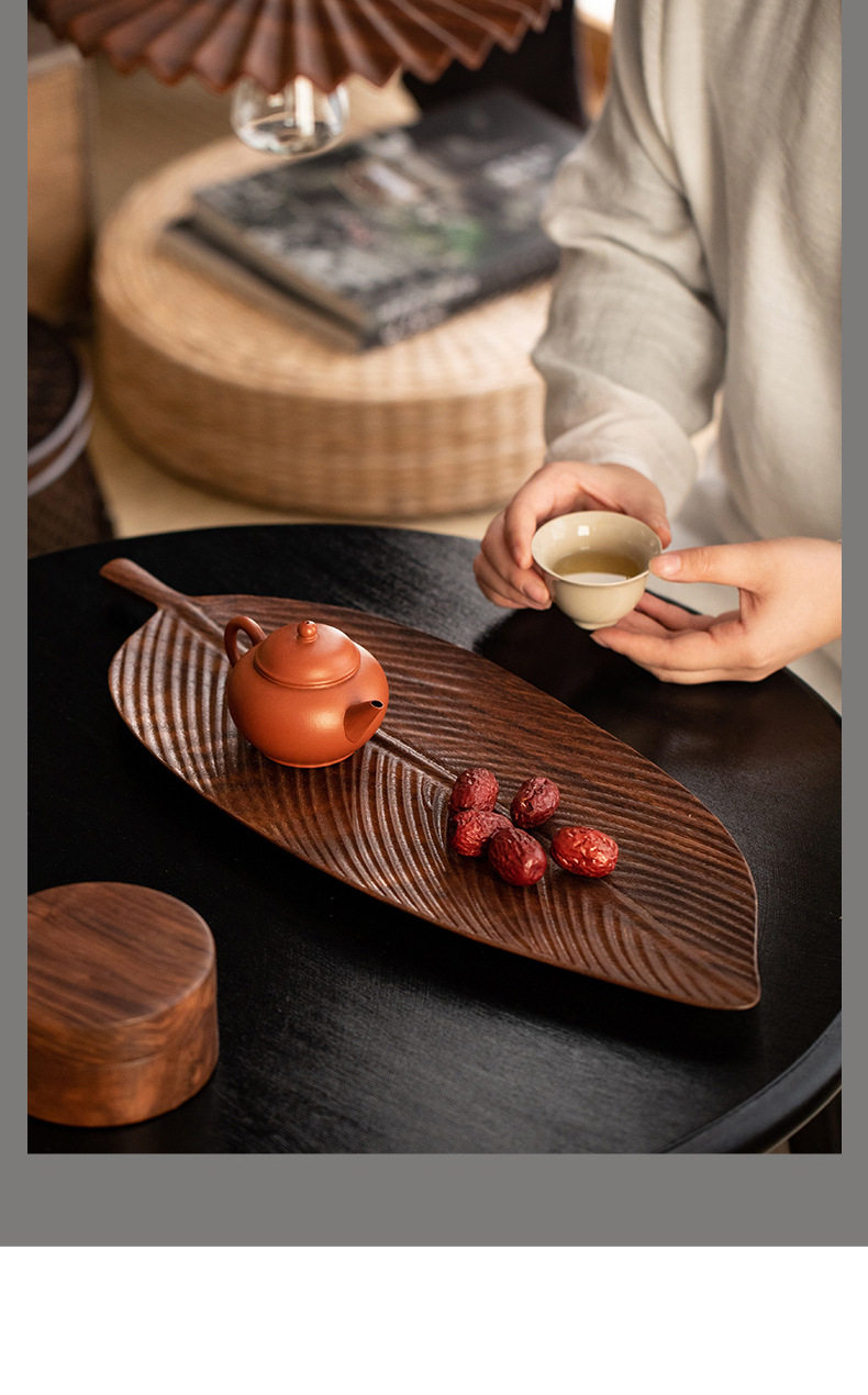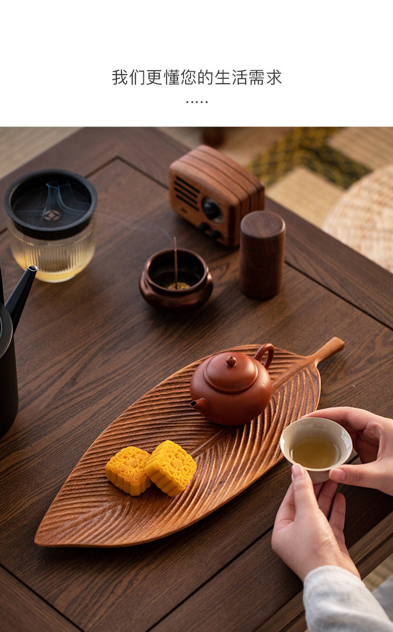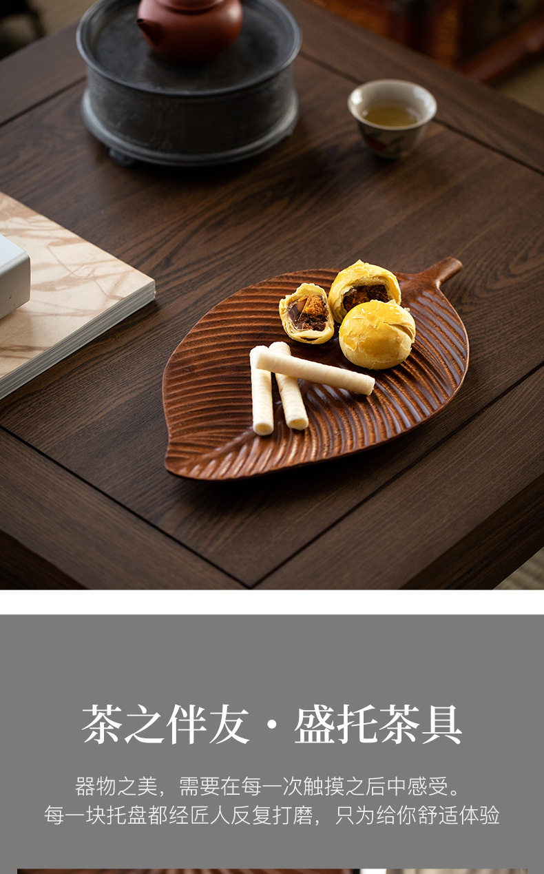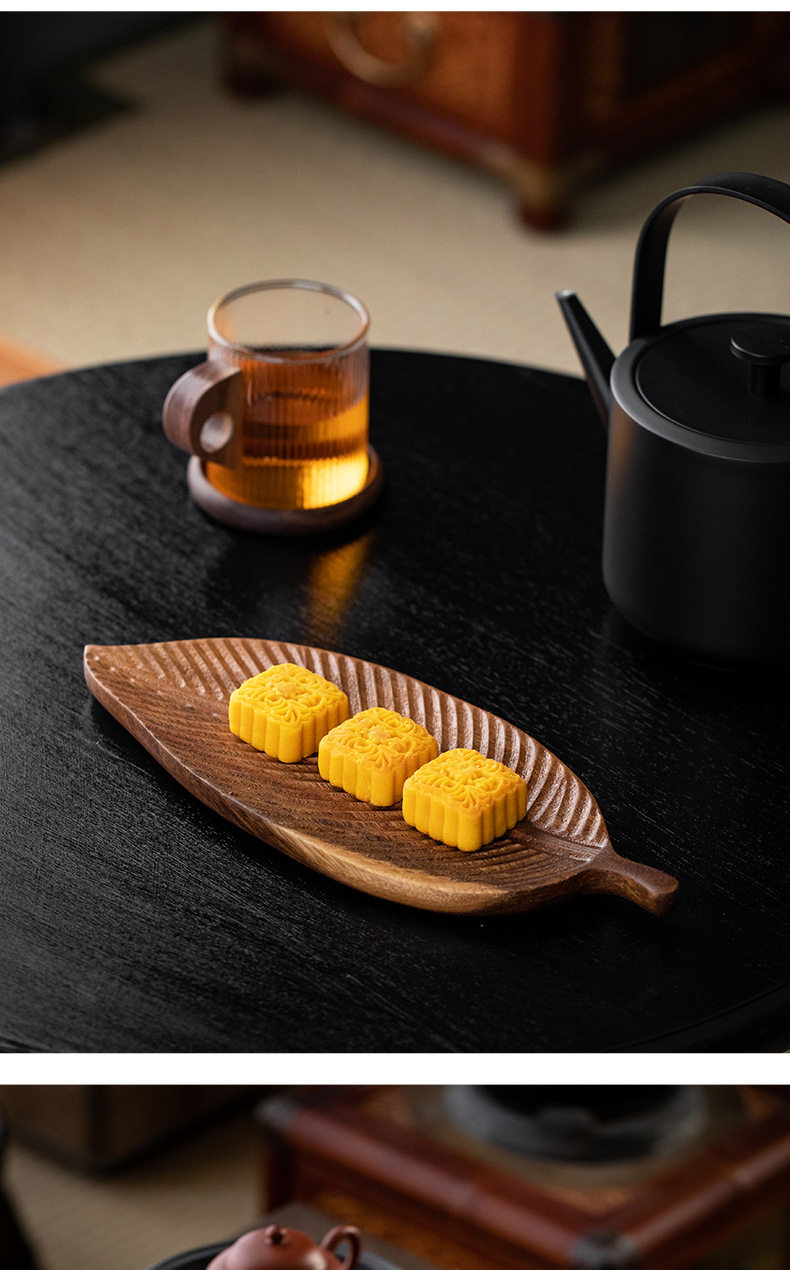 Walnut Leaf Refreshment Tray Household Wooden Tea Table Solid Wood Dry Brewing Tea Tray Tea Cup Tray Wooden