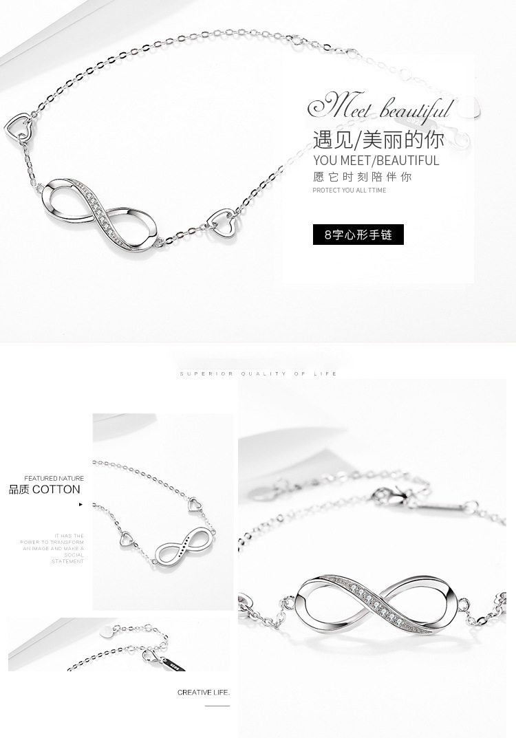 Cross-Border Simple and Fashionable 8-Shaped Bracelet Heart-Shaped Diamond Bracelet Hand Ornaments Street Stall Night Market Yiwu Small Commodities