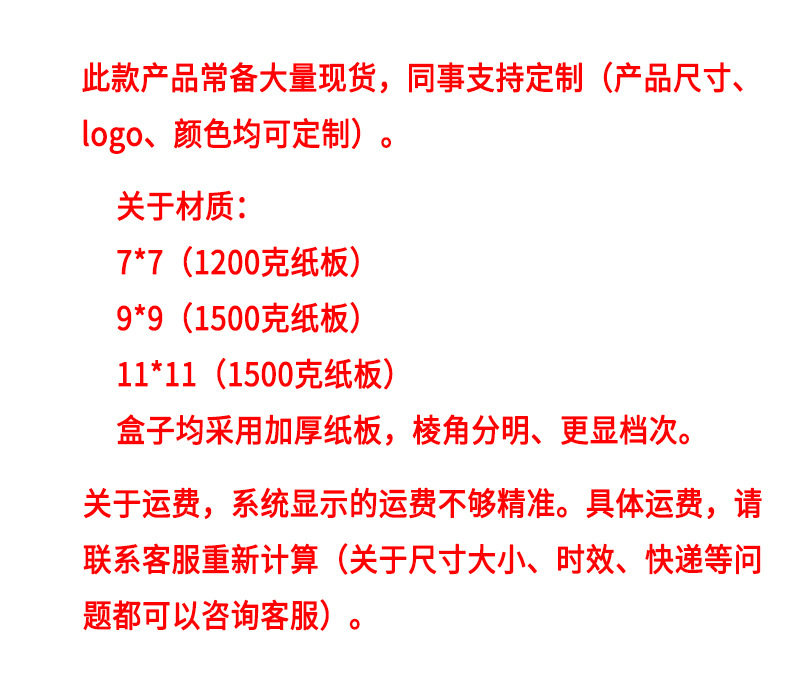 | Specifications | Outer box + inner box 7*7*2cm,Outer box + inner box 9*9*2cm,Outer box + inner box 11*11*2cm),Outer box + inner box 18*18*2cm,Outer box + inner box 14*14*2cm |